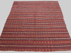 Size: 13ft 7in x 5ft 0in (413 x 153cm). Antique Uzbek Tartari safid (white) kilim with colourful banded design. Circa 1900/20. This unusual kilim is from Uzbekistan, from the region near the town of Sar-i-Pul, set in the northern foothills of the Tibandi Turkestan mountain range where the Hazara women are the main source of this Kilim weaving style. Known as safid (white) kilims, due to the large areas of white separated by coloured bands. These kilims were woven on a simple narrow loom, and are usually long and narrow. The white areas are decorated with embroidered designs. Excellent condition, very slight wear. Note the original knotted end finishes at both ends. Stock Number: DS-0293. All of our prices include FREE WORLD WIDE EXPRESS DELIVERY by DHL. To purchase any item please click on the payment link. We are also happy to accept most payment methods including American Express, bank transfers, debit & credit cards. To purchase by card over the telephone, please contact us on 01608 652111 or 0044 1608 652111 from outside the UK. Internal Ref: DS-0293