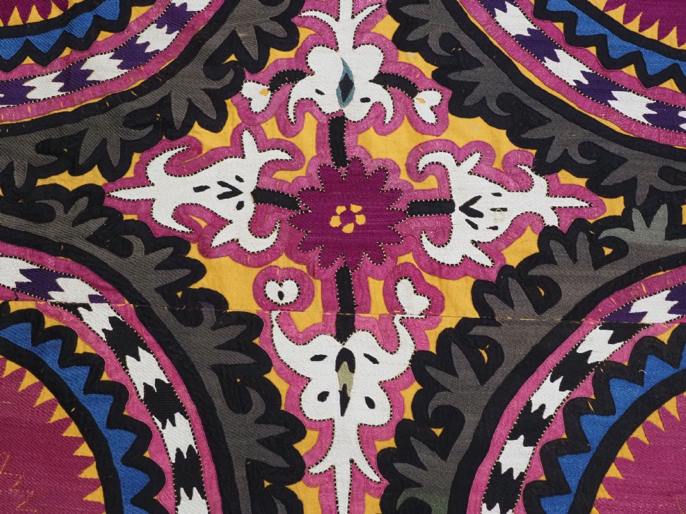 Antique Uzbek Samarkand 'bolim posh' suzani, superb colour and condition.