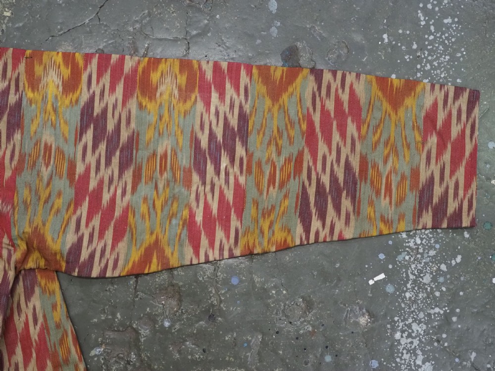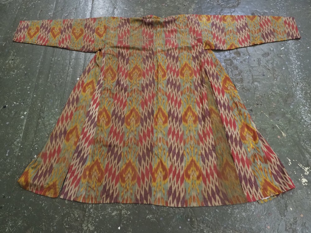 ANTIQUE UZBEK SILK IKAT GENTLEMANS COAT 'KHALAT' BUKHARA REGION, CIRCA 1880.