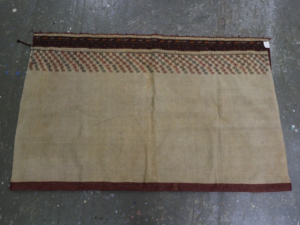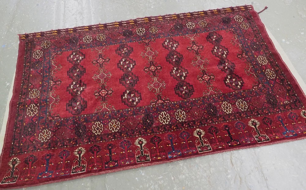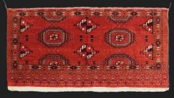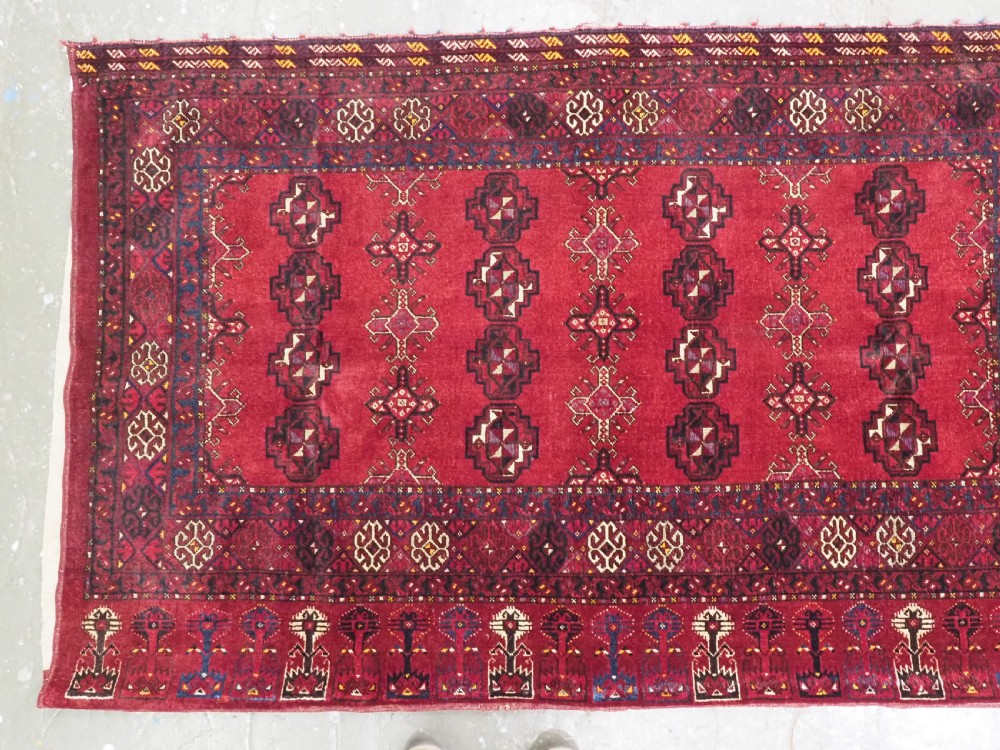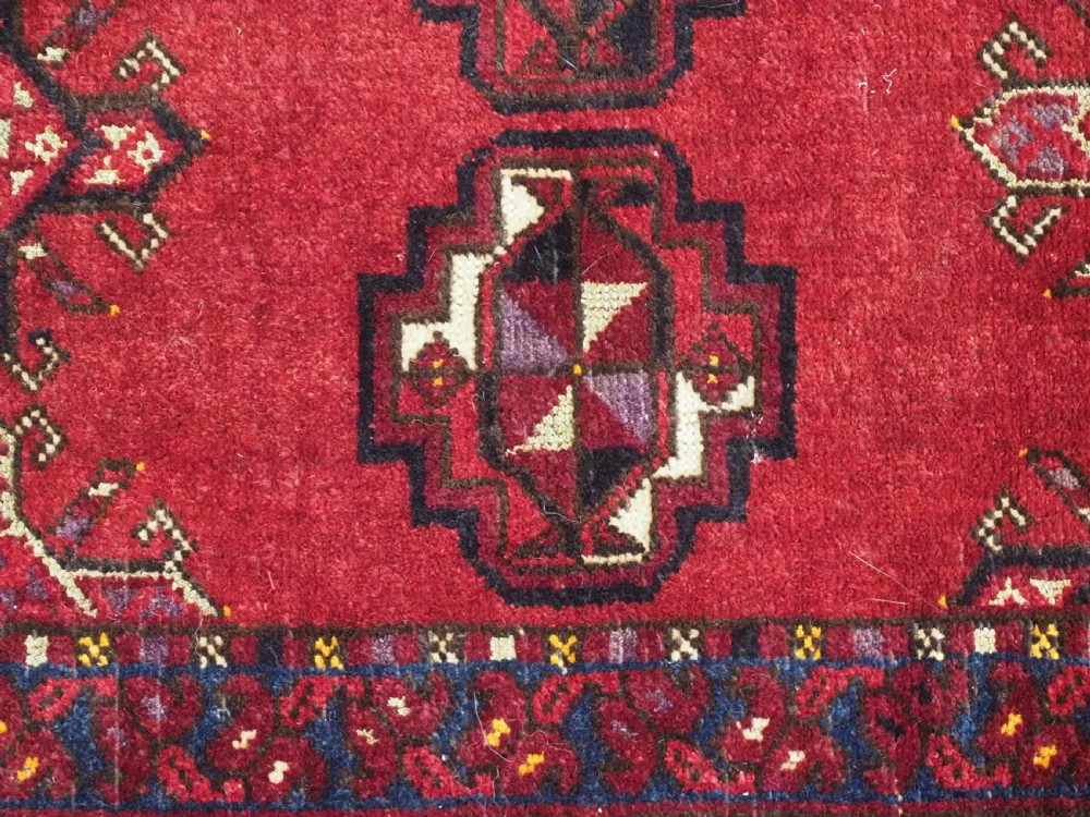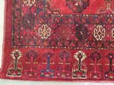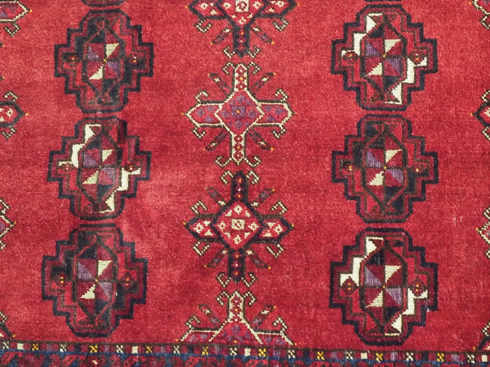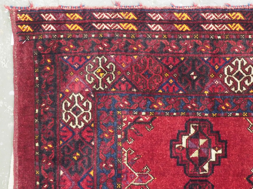 Size: 6ft 1in x 3ft 10in (185 x 117cm). Antique Afghan Ersari Turkmen chuval, probably by the Kizyl Ayak Turkmen. Circa 1900. A superb large chuval complete with its original plain weave back, the back is decorated to the upper part. The chuval face has 16 chuval guls seperated by minor guls with rams horn devices, there are purple silk highlights in the main guls and the minor guls, silk is also found in the border designs. The elem panel at the lower end is beautifully drawn with the classic Kizil Ayak shrubs or trees. The chuval is in excellent condition with very slight even wear and full pile, the chuval has been opened at the sides for display. Stock Number: DS-1444. All of our prices include FREE WORLD WIDE EXPRESS DELIVERY by DHL. To purchase any item please click on the payment link. We are also happy to accept most payment methods including American Express, bank transfers, debit & credit cards. To purchase by card over the telephone, please contact us on 01608 652111 or 0044 1608 652111 from outside the UK. Internal Ref: DS-1444