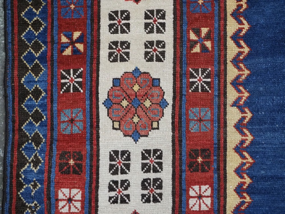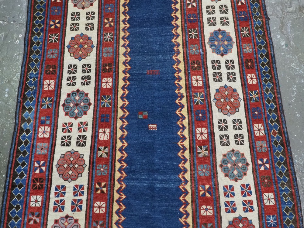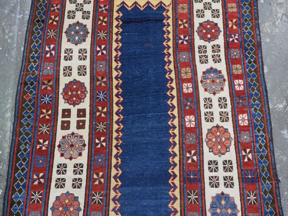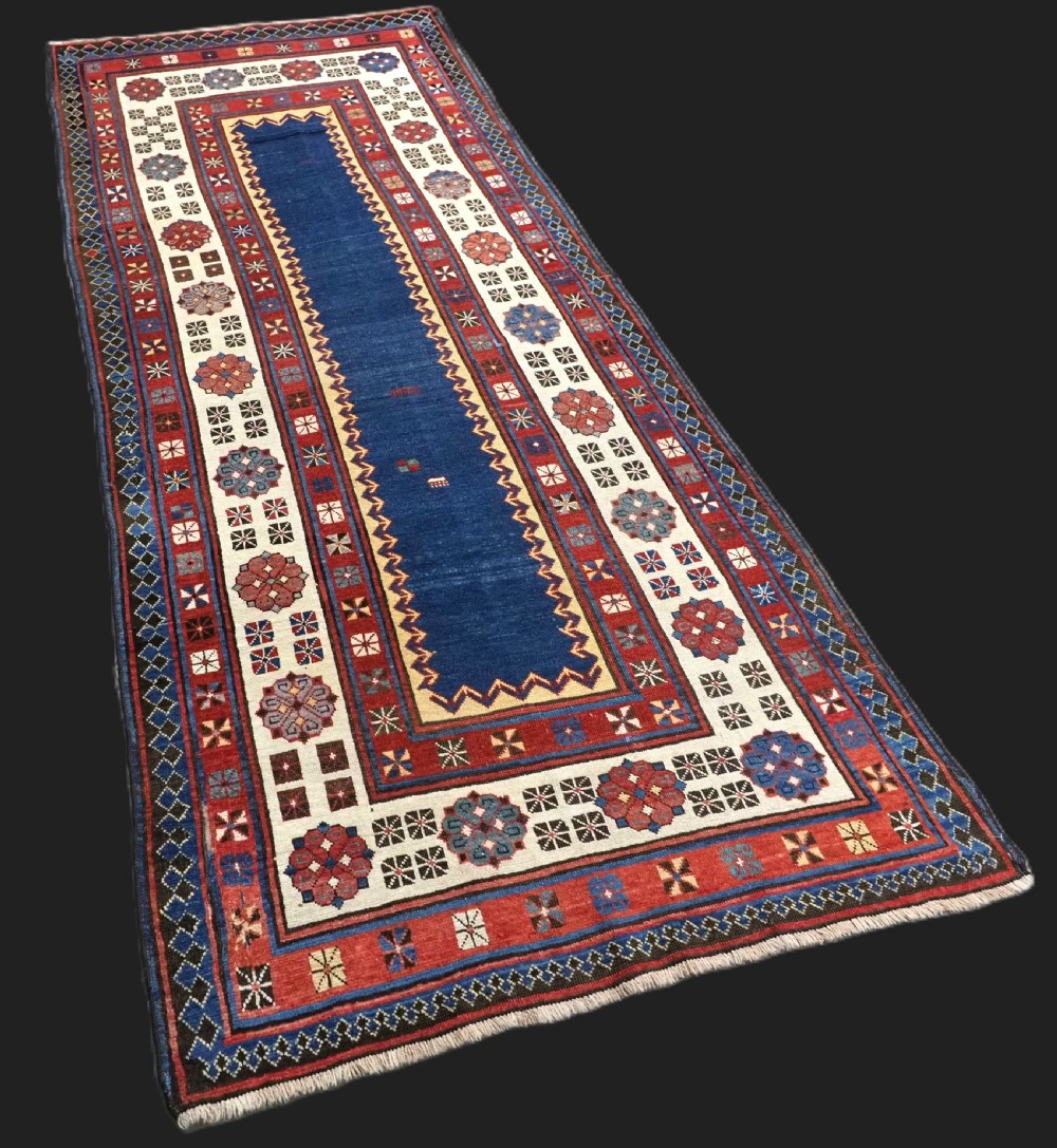 ANTIQUE CAUCASIAN TALISH LONG RUG WITH BLUE GROUND, OUTSTANDING CONDITION AND COLOUR, CIRCA 1880.