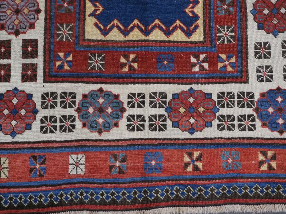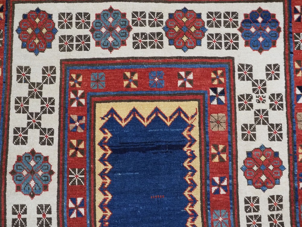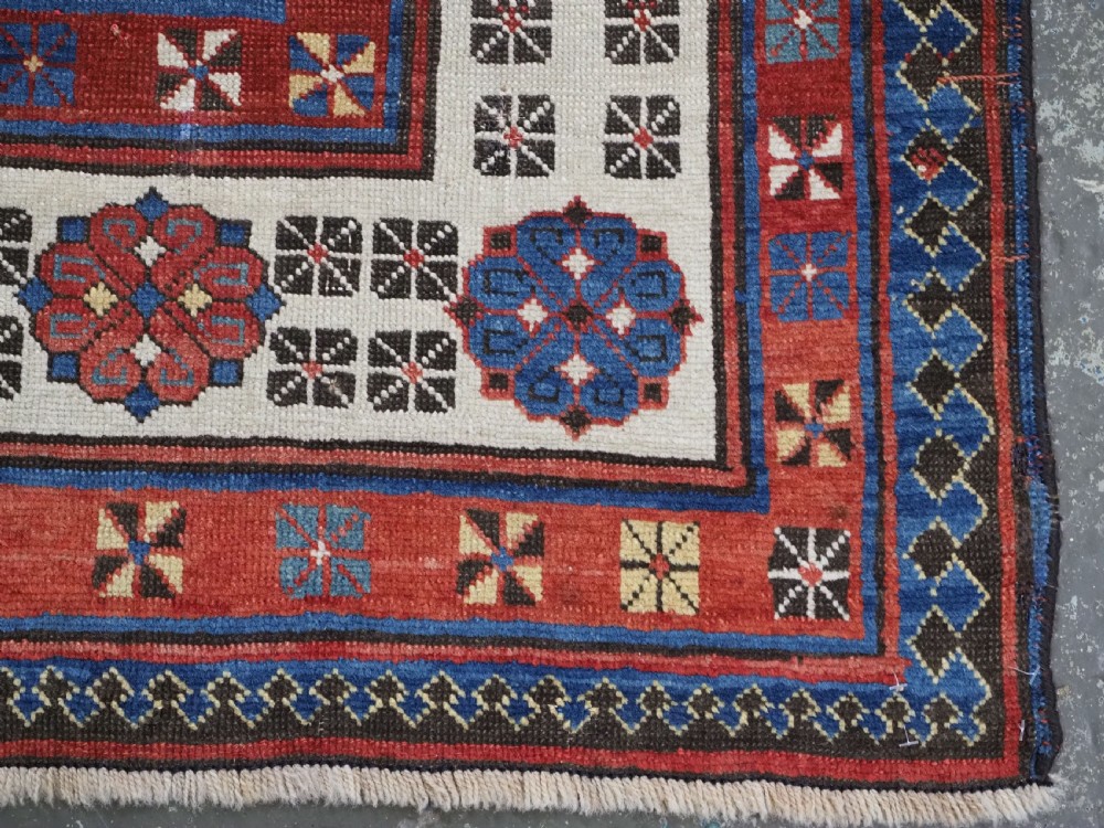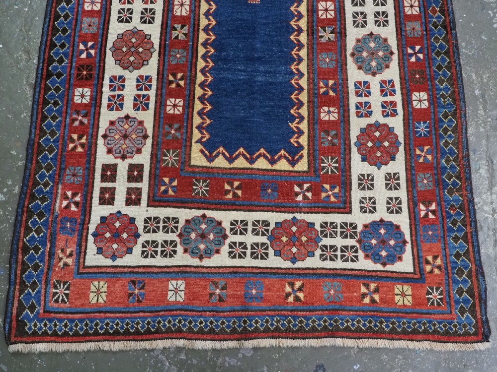 ANTIQUE CAUCASIAN TALISH LONG RUG WITH BLUE GROUND, OUTSTANDING CONDITION AND COLOUR, CIRCA 1880.
