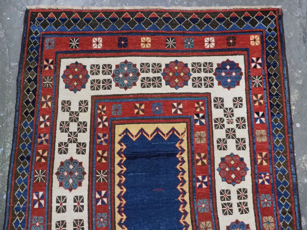 Size: 8ft 0in x 3ft 4in (245 x 102cm). Antique Caucasian Talish long rug with a narrow indigo blue field. Circa 1880. This is an outstanding example of a Talish long rug, it has a classic Talish design and ivory ground rosette border. The use of yellow in the small reciprocal design on the edge of the blue field is a nice feature. and frames the narrow blue field very well. Note the small filler elements placed in the blue field. The rug is in excellent condition with very slight even wear and good pile, the wool is soft and the weave is fine. There is some slight corrosion to the blacks. Hand washed and ready for use or display. A truly outstanding example of type. Stock Number: H-562. All of our prices include FREE WORLD WIDE EXPRESS DELIVERY by DHL. To purchase any item please click on the payment link. We are also happy to accept most payment methods including American Express, bank transfers, debit & credit cards. To purchase by card over the telephone, please contact us on 01608 652111 or 0044 1608 652111 from outside the UK. Internal Ref: H-562