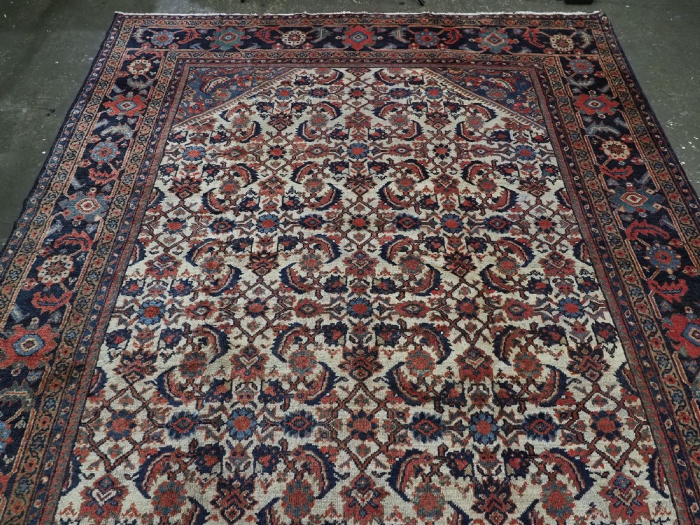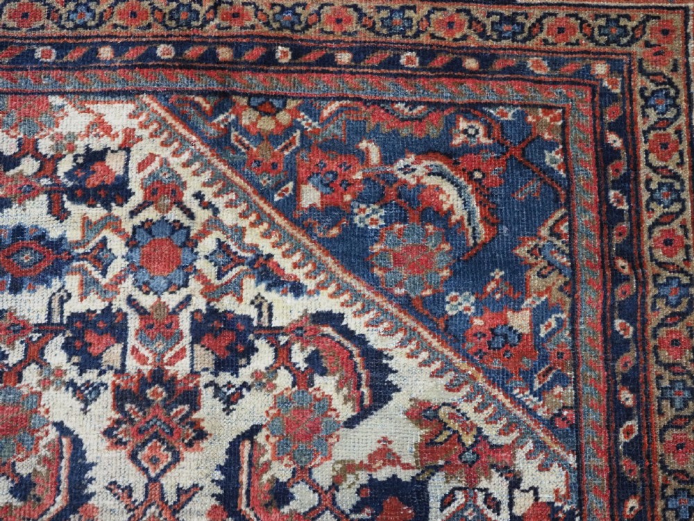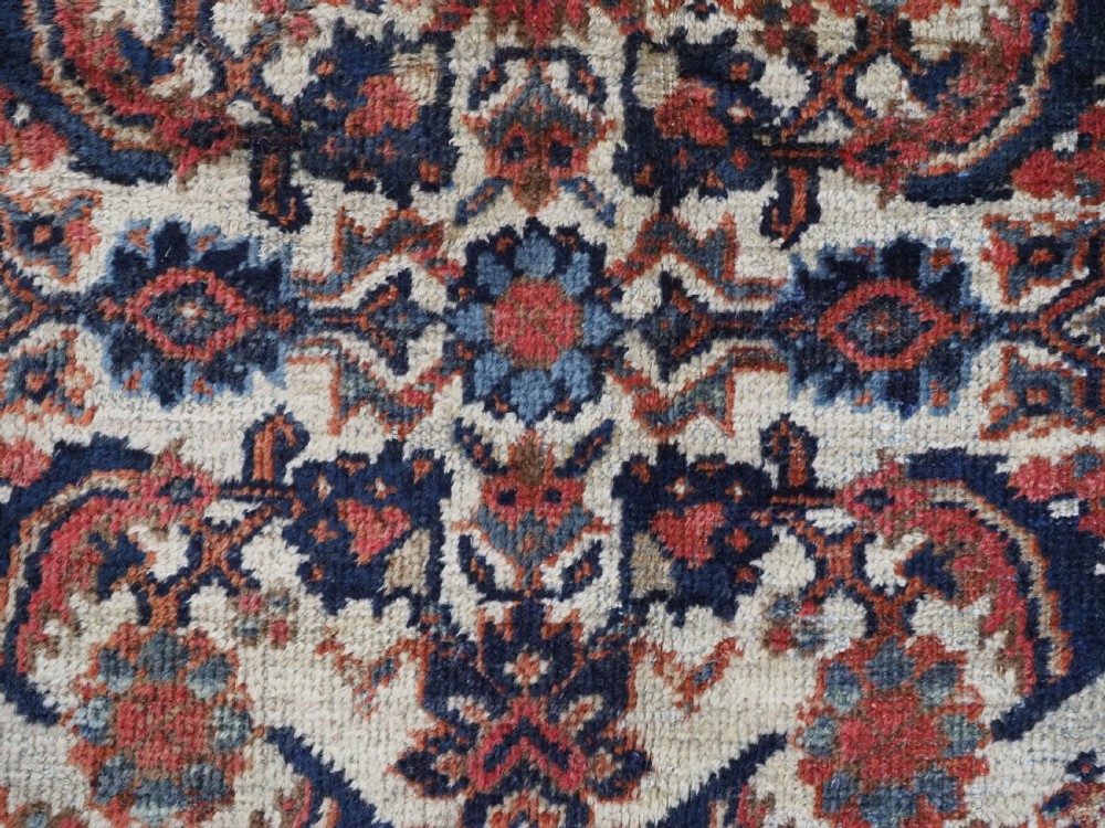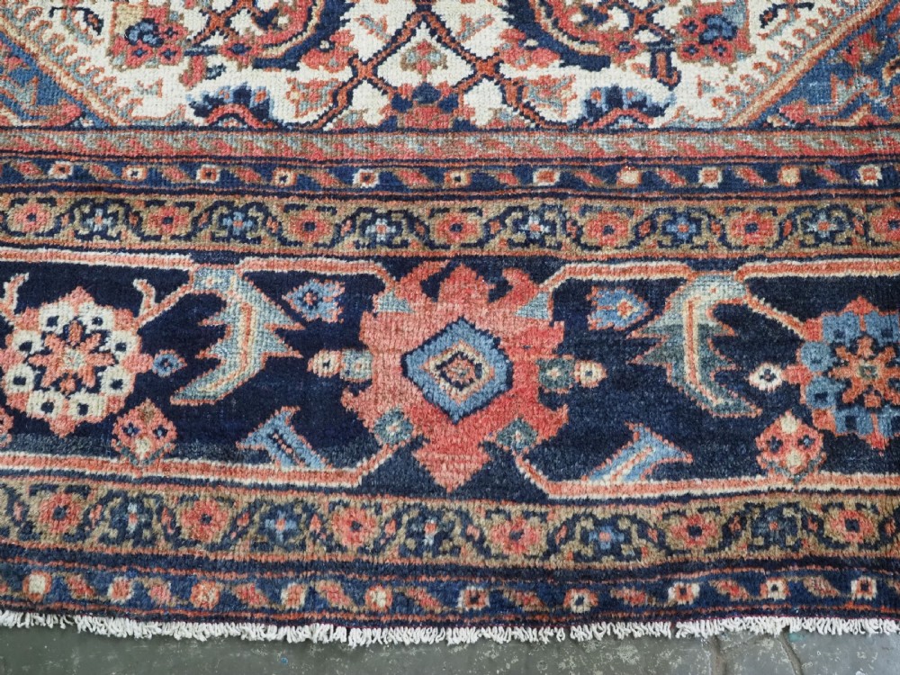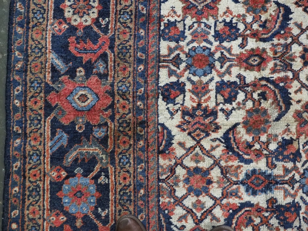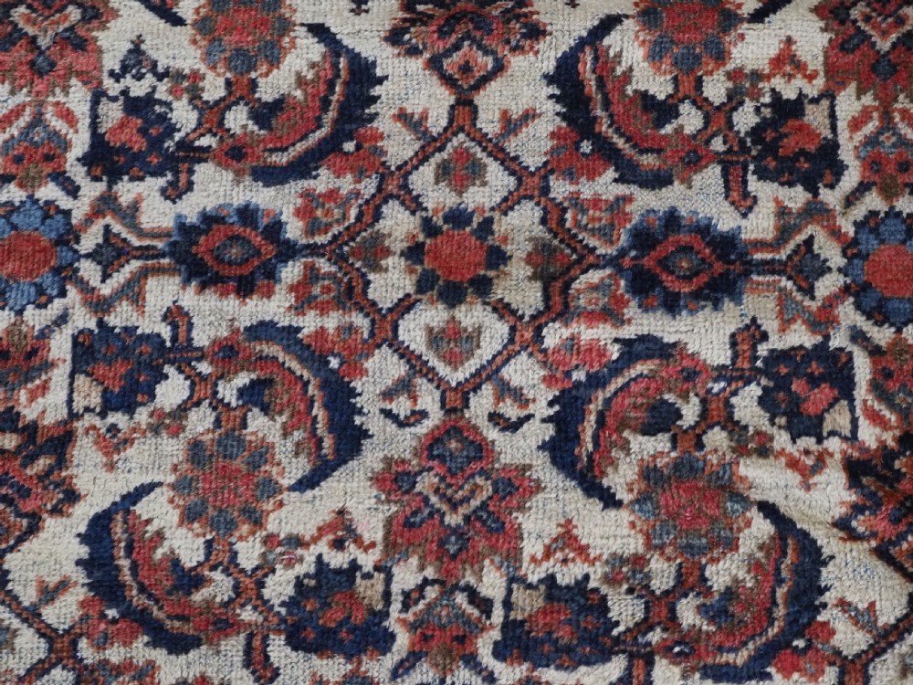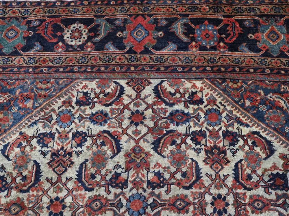 Size: 11ft 10in x 9ft 2in (360 x 280cm). Antique Persian Mahal carpet of good room size, with all over herati design. Circa 1900. A good country house furnishing carpet with all over large herati design on an ivory field, the indigo blue border frames the carpet really well. The carpet is beautifully drawn with wonderful colour throughout, the ivory field has a soft cream colour. The carpet is in excellent condition with even wear and medium pile. Hand washed and ready for use or display. The carpet is suitable for normal domestic use. Stock Number: R-2859. All of our prices include FREE WORLD WIDE EXPRESS DELIVERY by DHL. To purchase any item please click on the payment link. We are also happy to accept most payment methods including American Express, bank transfers, debit & credit cards. To purchase by card over the telephone, please contact us on 01608 652111 or 0044 1608 652111 from outside the UK. Internal Ref: R-2859
