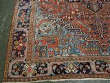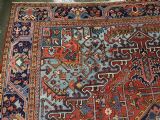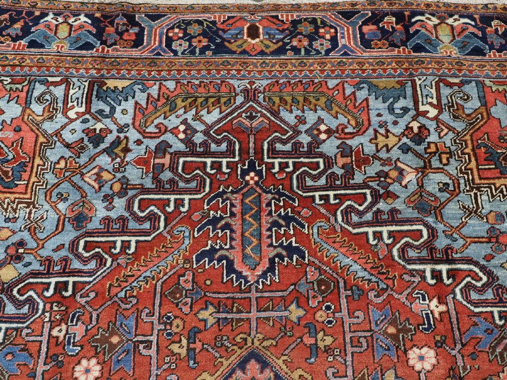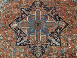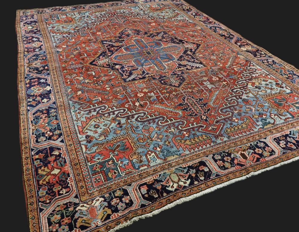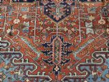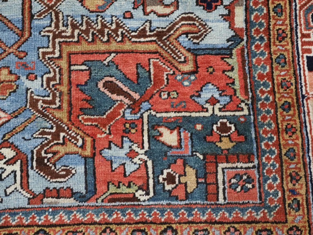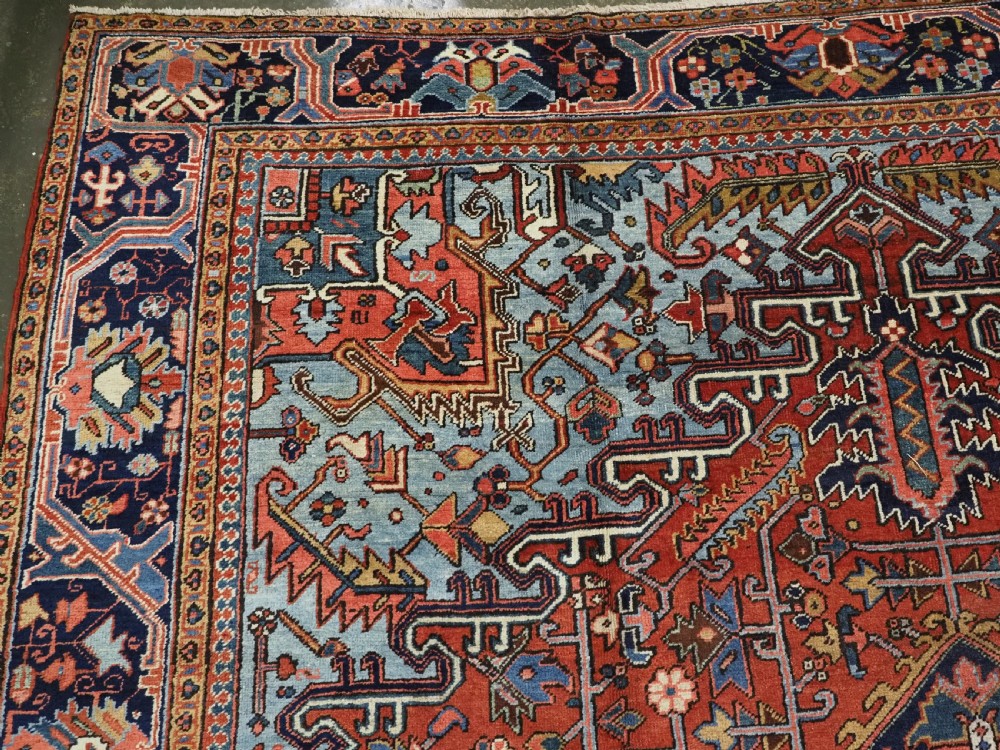 The carpet has a large central star medallion of traditional Heriz design, the ground colour is a superb madder red with a terracotta / rust tone, with the open floral spray design in pastel colours. The spandrels are in soft powder blue which creates a very light feel to the carpet. The well drawn indigo blue classic Heriz border frames the carpet well. A superb designers carpet for that timeless country house look. The carpet is in excellent condition with very slight even wear and good pile. The carpet is suitable for heavy domestic use such as a living or dining room. The carpet has been hand washed and is ready for use or display. Stock Number: R-2864. All of our prices include FREE WORLD WIDE EXPRESS DELIVERY by DHL. To purchase any item please click on the payment link. We are also happy to accept most payment methods including American Express, bank transfers, debit & credit cards. To purchase by card over the telephone, please contact us on 01608 652111 or 0044 1608 652111 from outside the UK. Internal Ref: R-2864
