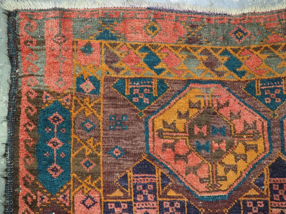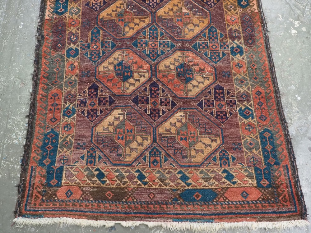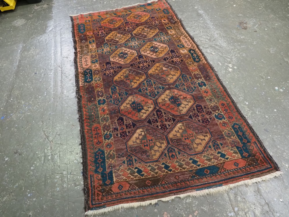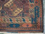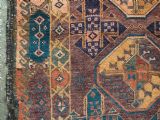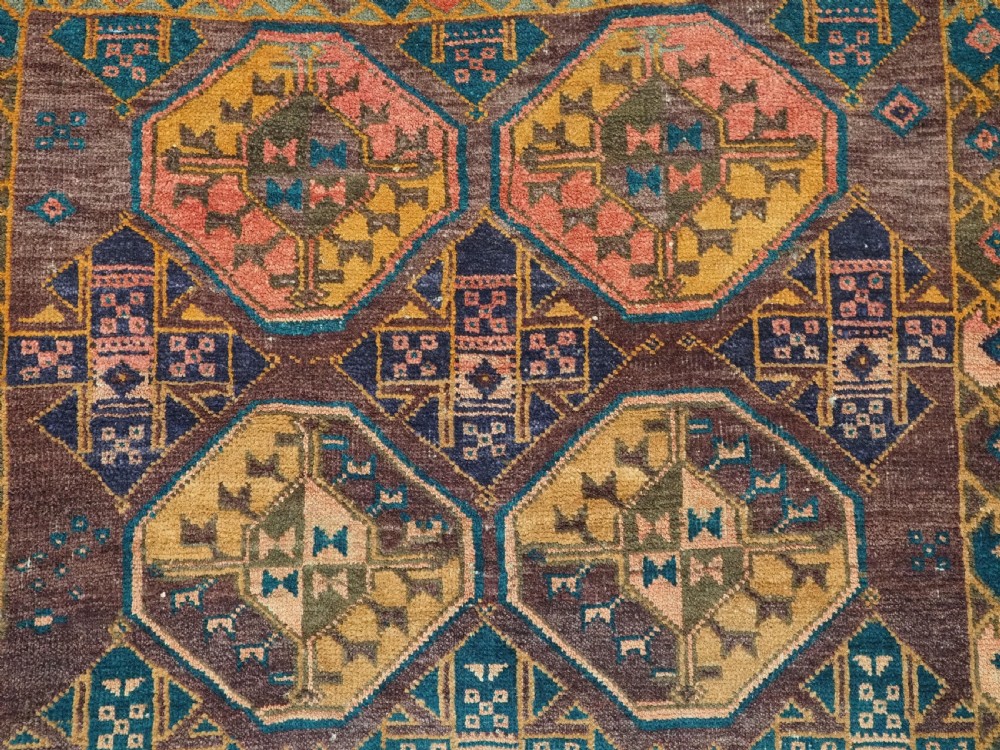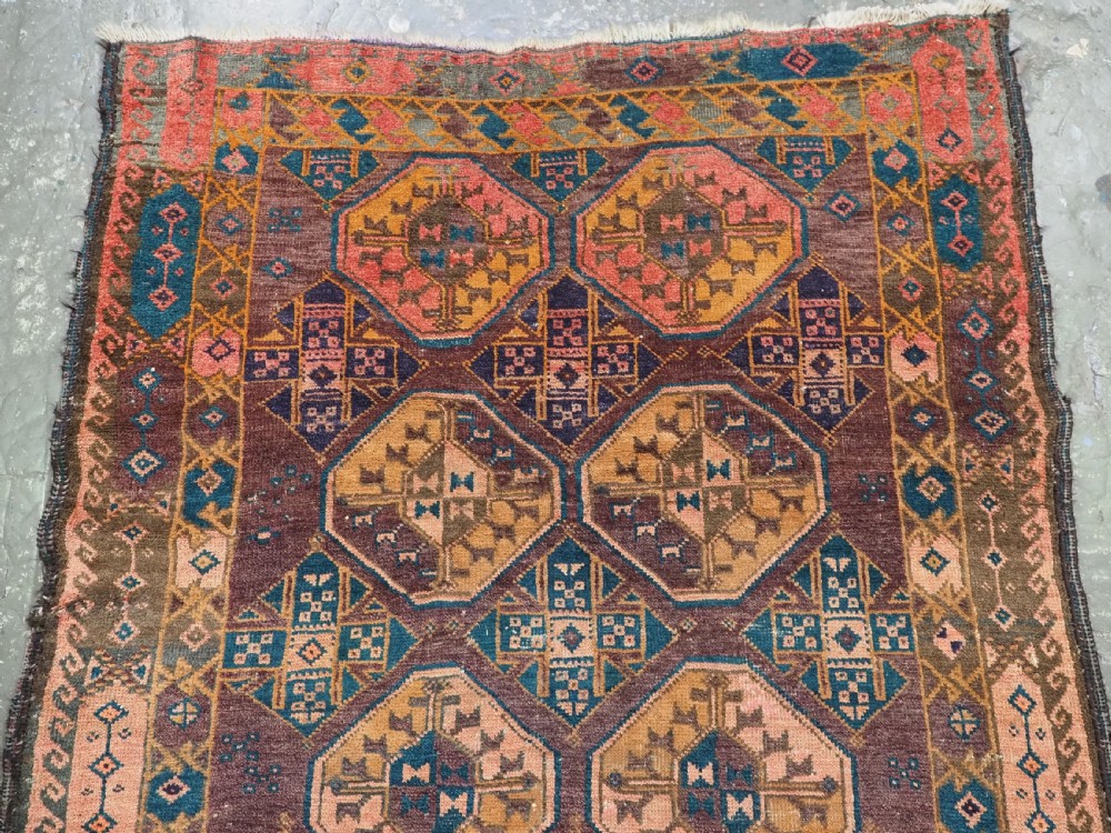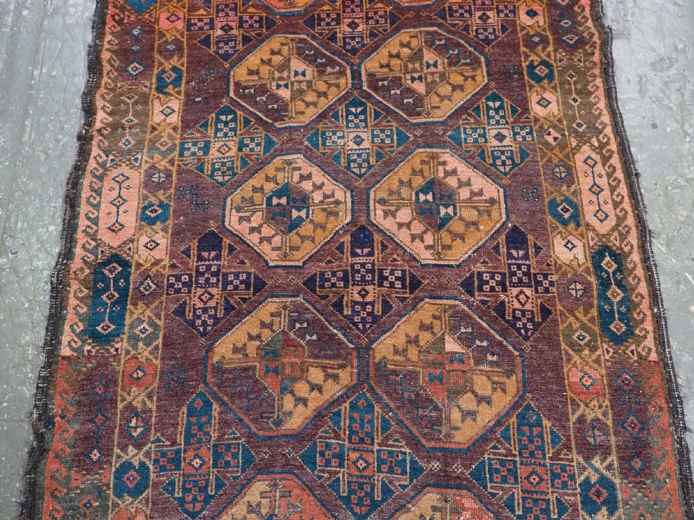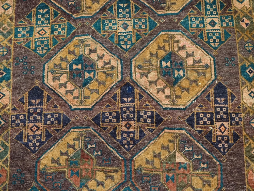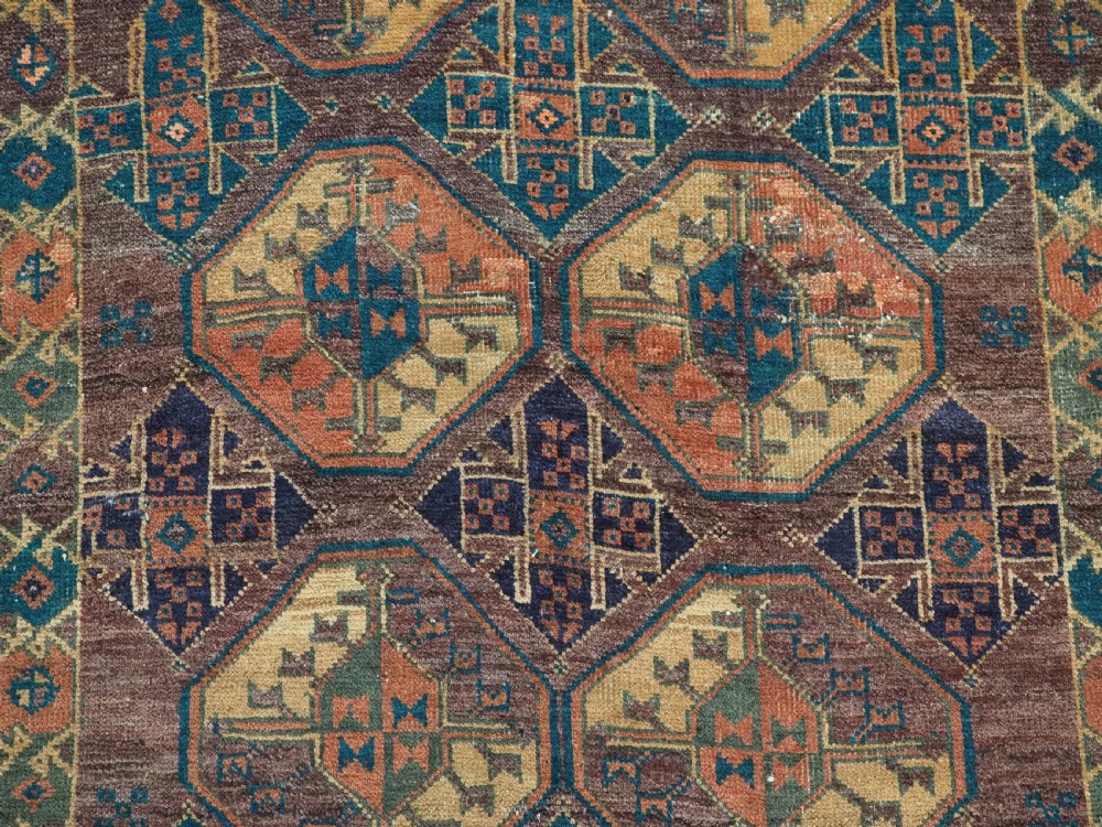 Size: 7ft 3in x 3ft 10in (220 x 116cm). Antique Central Asian Uzbek Karakalpak tribal rug with large Turkmen style guls. Circa 1900. The rug has two rows of six large octagonal guls, similar to those found on Turkmen rugs, the rug has a very 'earthy' colour palette. The rug is framed by a border with traditional design. The Karakalpak are a small group of Turkic speaking tribes found in the region of western Uzbekistan. The rug is in good condition with even wear with medium pile. There are a number of old repairs to the field. The carpet is suitable for normal domestic use. Stock Number: C-07. All of our prices include FREE WORLD WIDE EXPRESS DELIVERY by DHL. To purchase any item please click on the payment link. We are also happy to accept most payment methods including American Express, bank transfers, debit & credit cards. To purchase by card over the telephone, please contact us on 01608 652111 or 0044 1608 652111 from outside the UK. Internal Ref: C-07