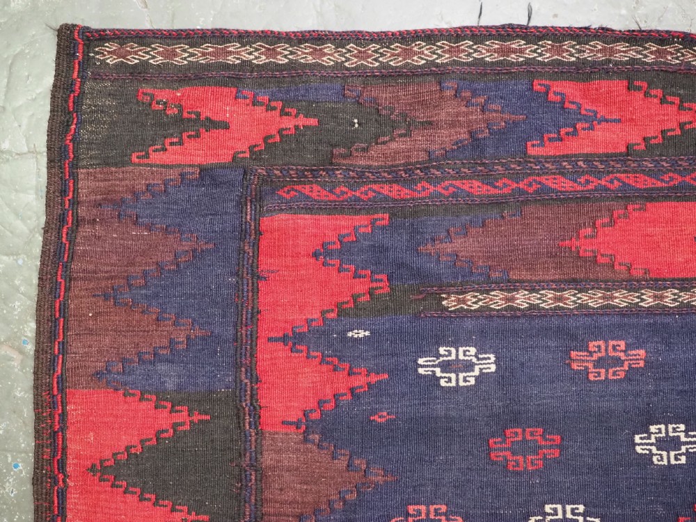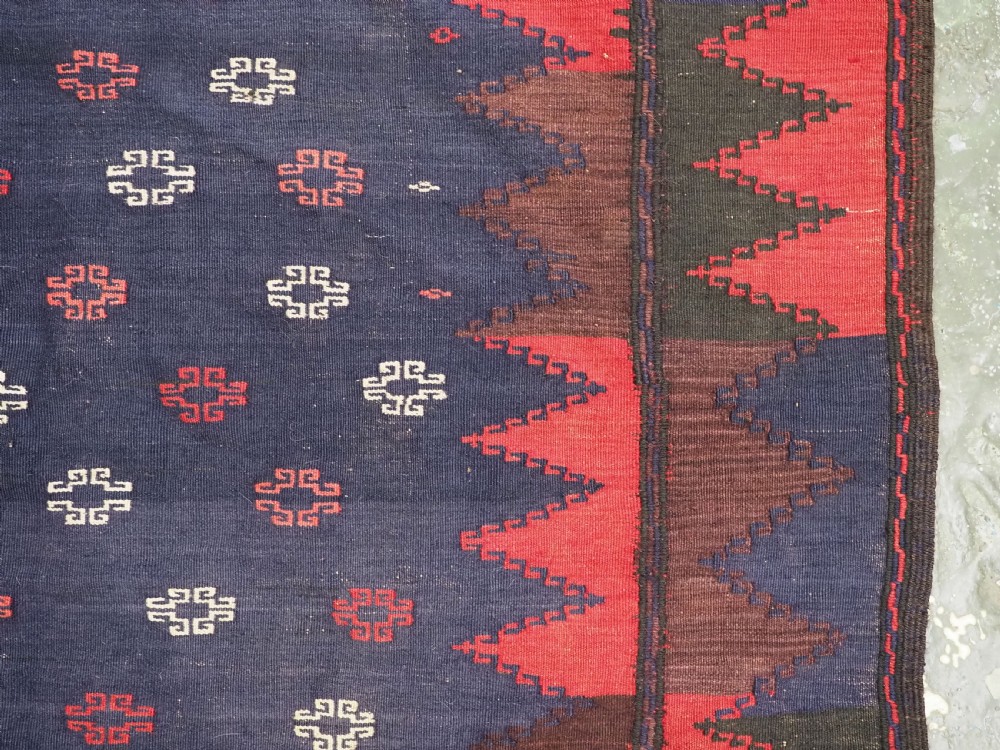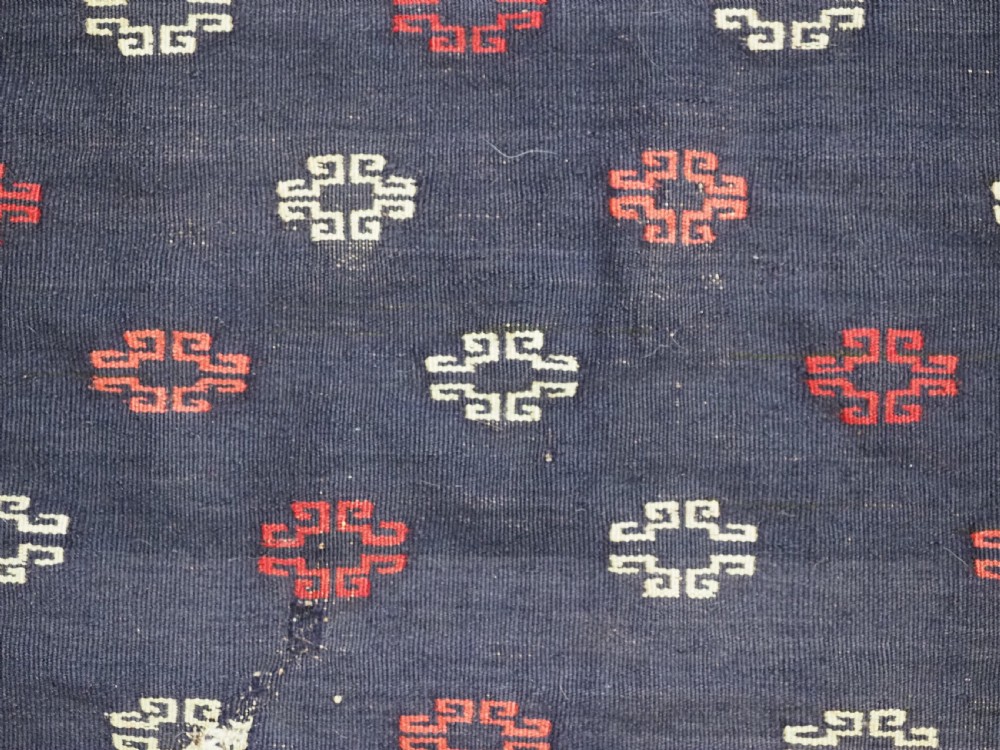 Size: 4ft 5in x 4ft 2in (134 x 128cm). Antique Afghan Baluch sofreh. Circa 1900/20. The sofreh has an indigo blue ground decorated with small floral rosettes. The large borders are of a chevron design. The sofreh is in good condition with some slight signs of use. The sofreh is suitable for light domestic use or could be used as a table cover or wall hanging. Stock Number: C-29. All of our prices include FREE WORLD WIDE EXPRESS DELIVERY by DHL. To purchase any item please click on the payment link. We are also happy to accept most payment methods including American Express, bank transfers, debit & credit cards. To purchase by card over the telephone, please contact us on 01608 652111 or 0044 1608 652111 from outside the UK. Internal Ref: C-29