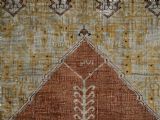 Antique Persian Tabriz silk prayer rug with double column design and saffron yellow above the soft terracotta red field.