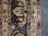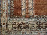 The rug is in original condition with some wear, heavier in places and some historic small damages to the lower right hand outer border. There is a hanging strip attached to the upper back of the rug.