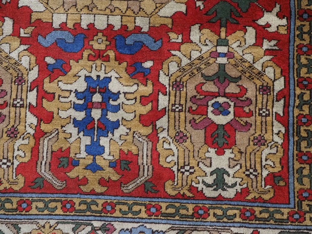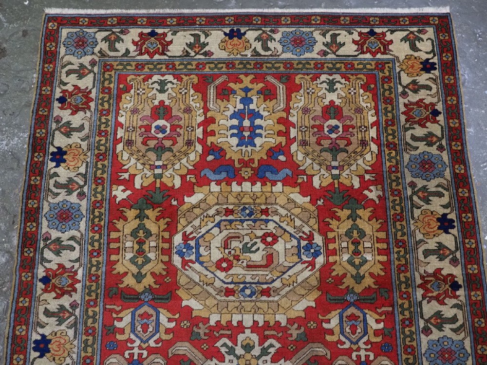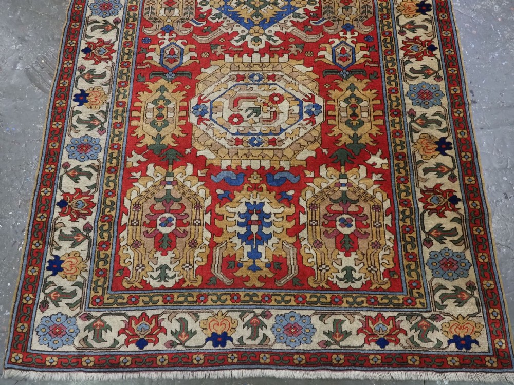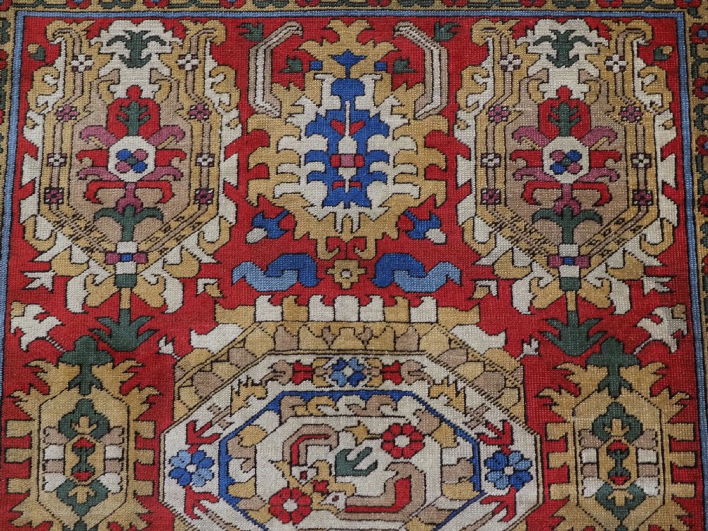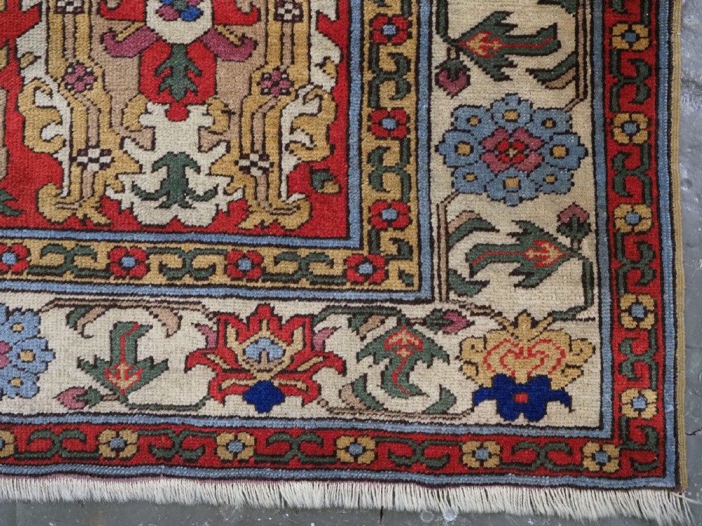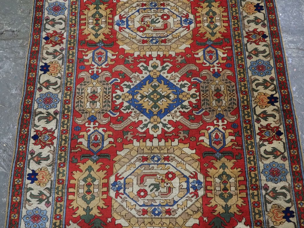 Size: 8ft 1in x 4ft 8in (247 x 141cm). Antique Turkish or Eastern European reproduction of an 18th century Caucasian 'blossom' rug. Circa 1920. This rug is an outstanding reproduction of the well-known 18th century Caucasian Karabagh region 'blossom' rug. It is thought that this reproduction was woven in Turkey or possibly Eastern Europe during the early part of the 20th century, it has been suggested that it could be from the workshop of the master weaver Teodor Tuduc, who had workshops in Brasov, Romania; and produced copies of some of the greatest 16th - 18th century rugs. The rug is of fine with with very soft wool, the foundation has hand spun ivory coloured wool warps, giving a very floppy handle. The rug has some even wear and medium pile, it has been hand washed and is ready for use or display. The rug is suitable for normal domestic use. Stock Number: R-2793. All of our prices include FREE WORLD WIDE EXPRESS DELIVERY by DHL. To purchase any item please click on the payment link. We are also happy to accept most payment methods including American Express, bank transfers, debit & credit cards. To purchase by card over the telephone, please contact us on 01608 652111 or 0044 1608 652111 from outside the UK. Internal Ref: R-2793