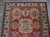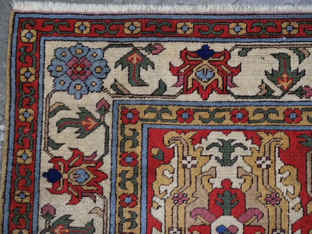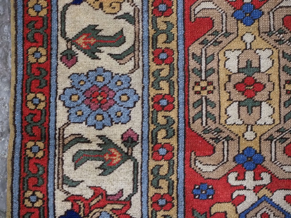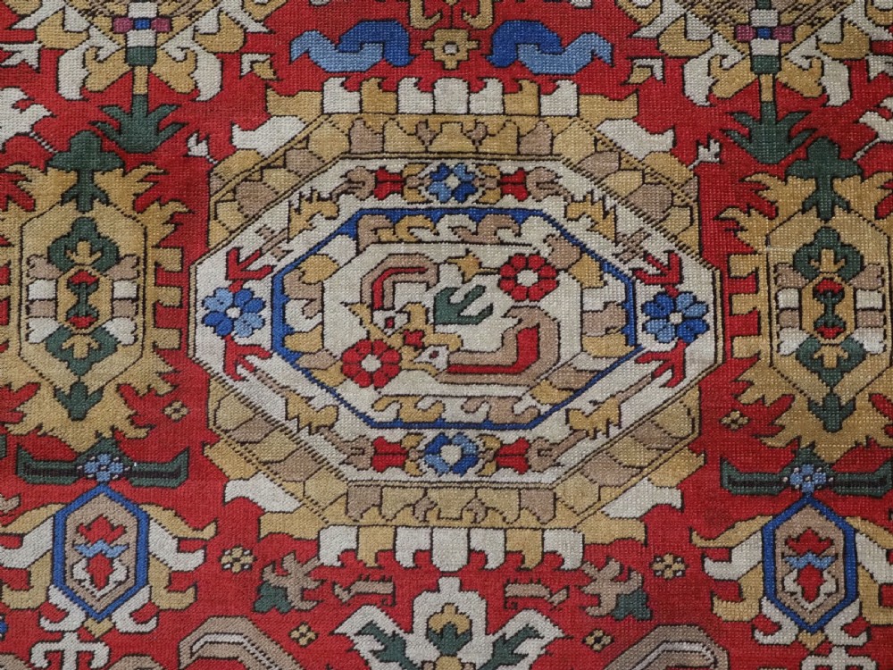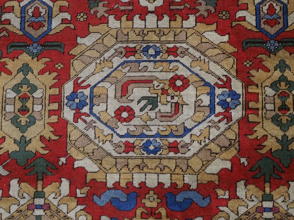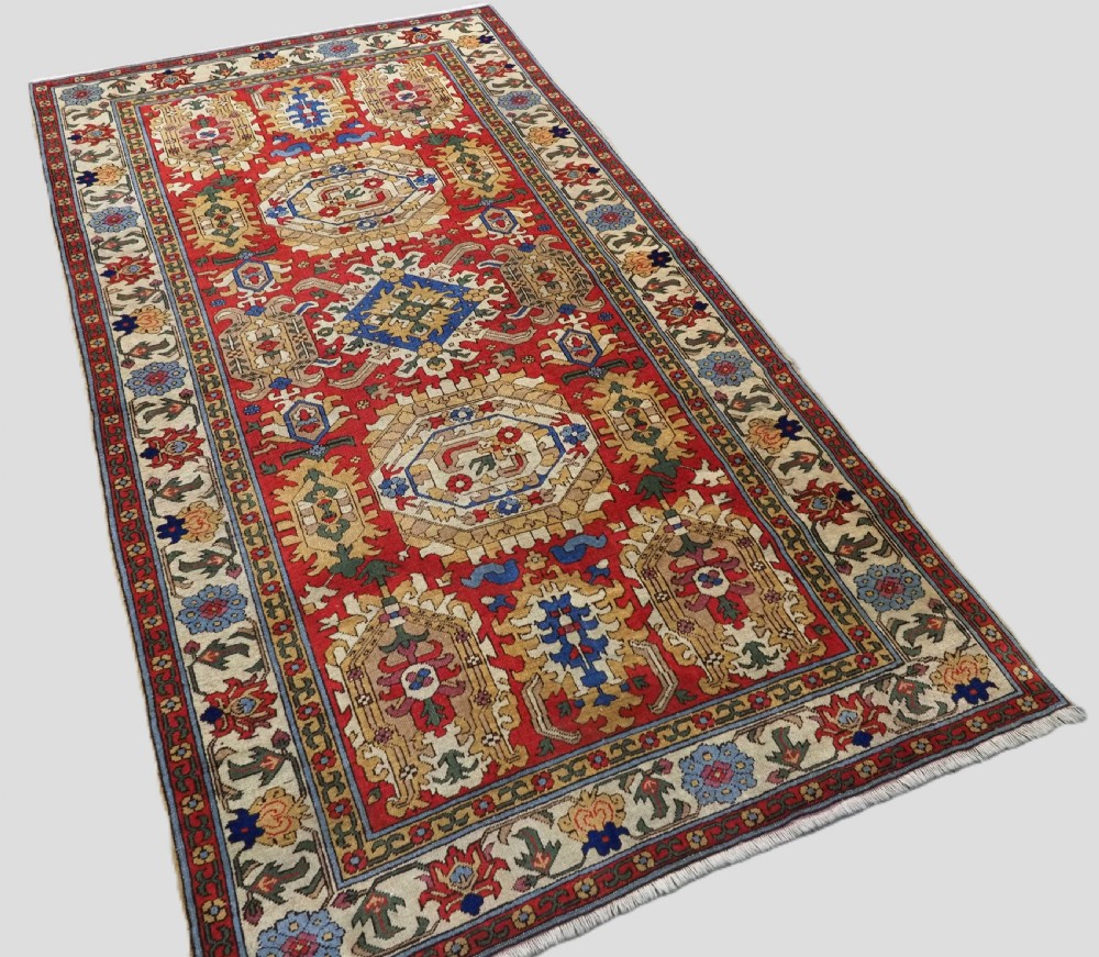Size: 8ft 1in x 4ft 8in (247 x 141cm). Antique Turkish or Eastern European reproduction of an 18th century Caucasian 'blossom' rug. Circa 1920. This rug is an outstanding reproduction of the well-known 18th century Caucasian Karabagh region 'blossom' rug. It is thought that this reproduction was woven in Turkey or possibly Eastern Europe during the early part of the 20th century, it has been suggested that it could be from the workshop of the master weaver Teodor Tuduc, who had workshops in Brasov, Romania; and produced copies of some of the greatest 16th - 18th century rugs. The rug is of fine with with very soft wool, the foundation has hand spun ivory coloured wool warps, giving a very floppy handle. The rug has some even wear and medium pile, it has been hand washed and is ready for use or display. The rug is suitable for normal domestic use. Stock Number: R-2793. All of our prices include FREE WORLD WIDE EXPRESS DELIVERY by DHL. To purchase any item please click on the payment link. We are also happy to accept most payment methods including American Express, bank transfers, debit & credit cards. To purchase by card over the telephone, please contact us on 01608 652111 or 0044 1608 652111 from outside the UK. Internal Ref: R-2793