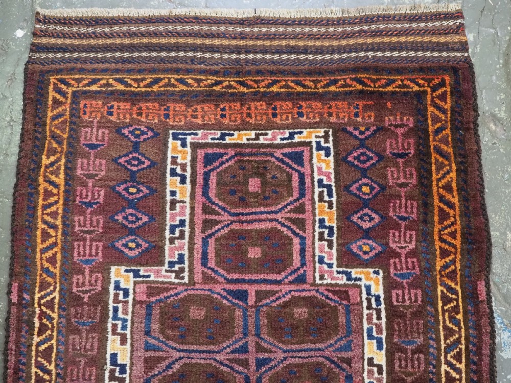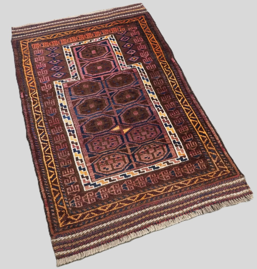 Size: 3ft 8in x 2ft 8in (112 x 81cm). Antique Afghan prayer rug with a traditional design to the field. Circa 1920. A charming small village prayer rug was woven in north west Afghanistan but Pashtun weavers, the rug has complete kilims at both ends which are decorated in bands of weft work. The rug is in excellent condition with very slight wear and full pile of excellent soft wool. The rug is suitable for normal domestic use. Stock Number: C-08. All of our prices include FREE WORLD WIDE EXPRESS DELIVERY by DHL. To purchase any item please click on the payment link. We are also happy to accept most payment methods including American Express, bank transfers, debit & credit cards. To purchase by card over the telephone, please contact us on 01608 652111 or 0044 1608 652111 from outside the UK. Internal Ref: C-08