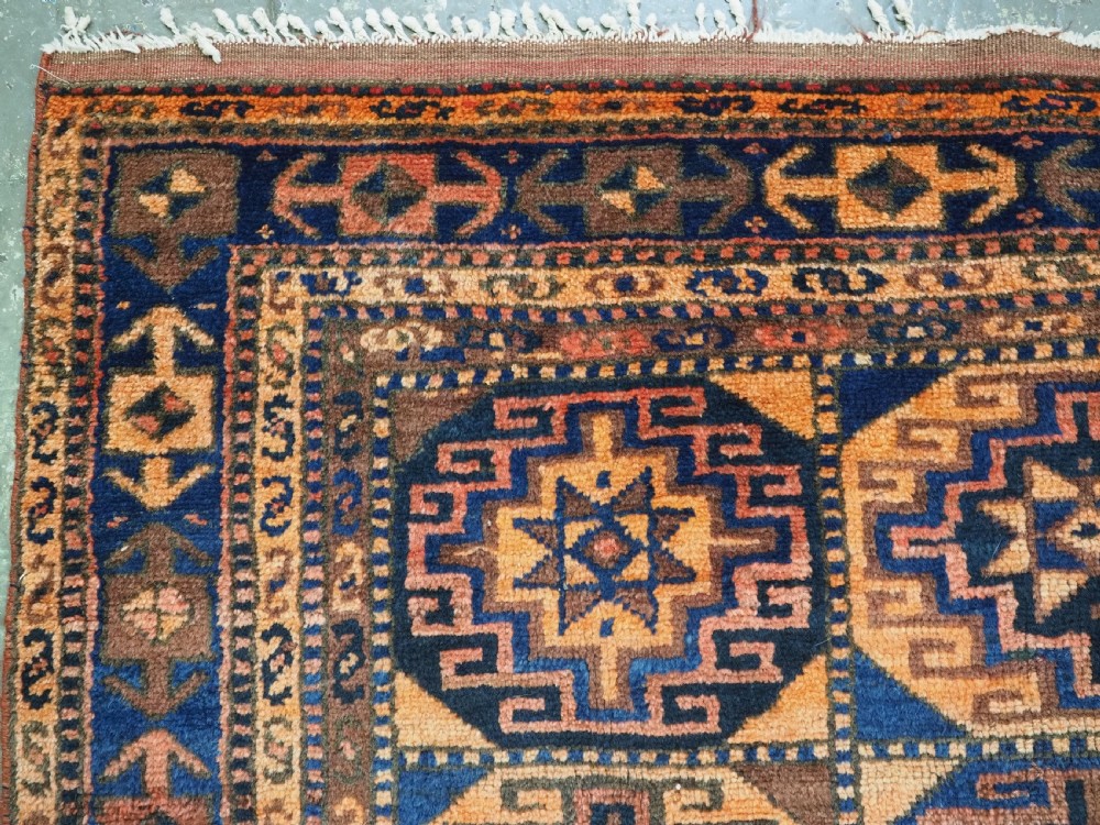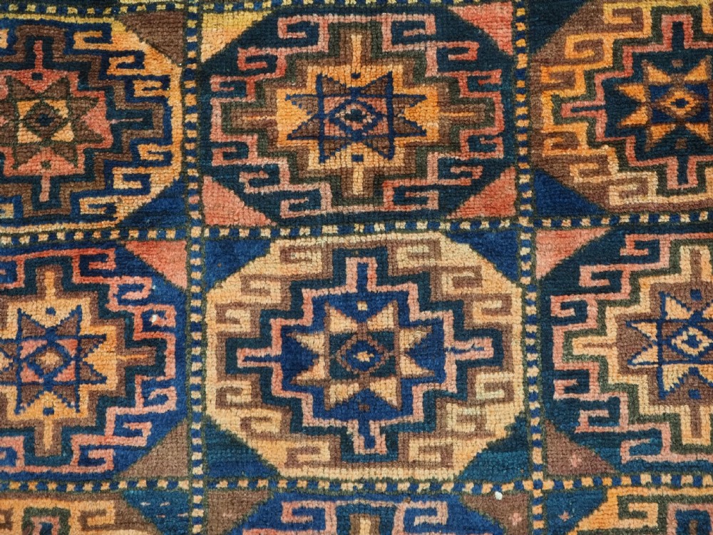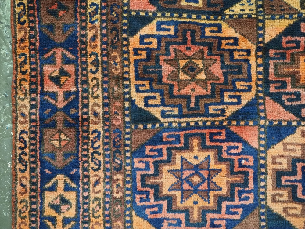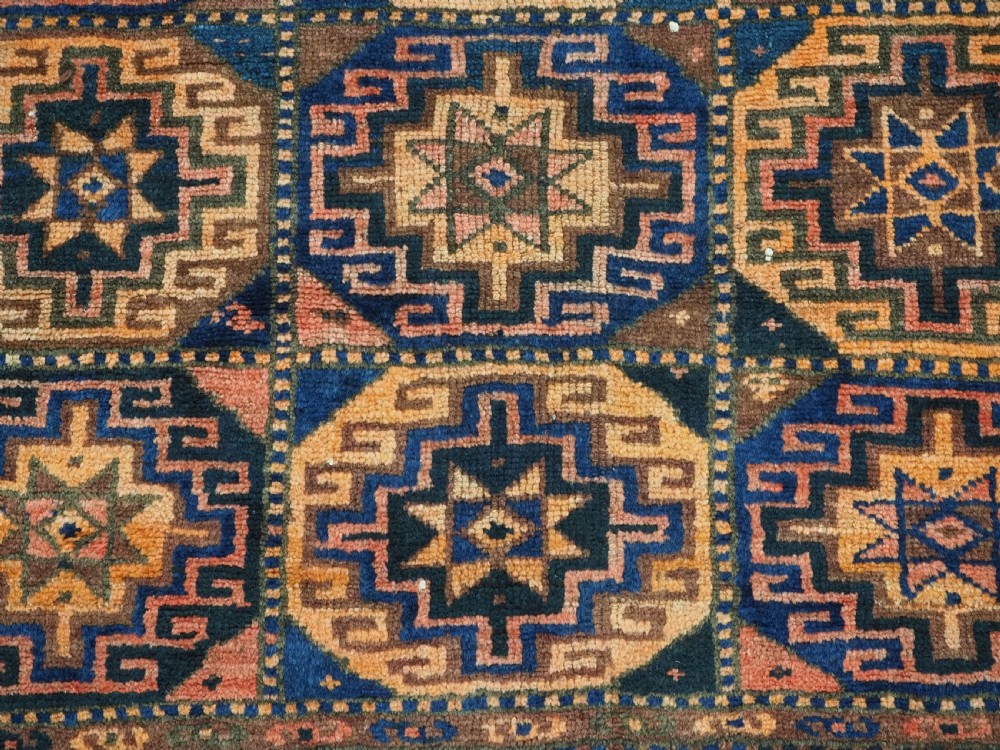 Size: 6ft 8in x 4ft 3in (203 x 129cm). Antique Kurdish Kordi rug, with 'Memlinc' guls. Circa 1920. A good small rug with three rows of seven 'Memlinc' type guls in octagons. The rug has a warm colour palette and good weight. Excellent condition with very slight even wear, good pile. The rug retains the original kilims at both ends, these are showing a few signs of wear. A good furnishing rug that will stand up to heavy wear. Stock Number: C-12. All of our prices include FREE WORLD WIDE EXPRESS DELIVERY by DHL. To purchase any item please click on the payment link. We are also happy to accept most payment methods including American Express, bank transfers, debit & credit cards. To purchase by card over the telephone, please contact us on 01608 652111 or 0044 1608 652111 from outside the UK. Internal Ref: C-12