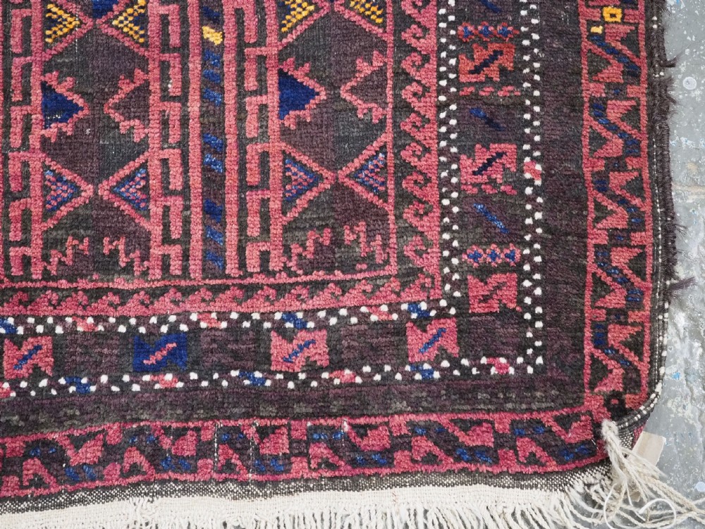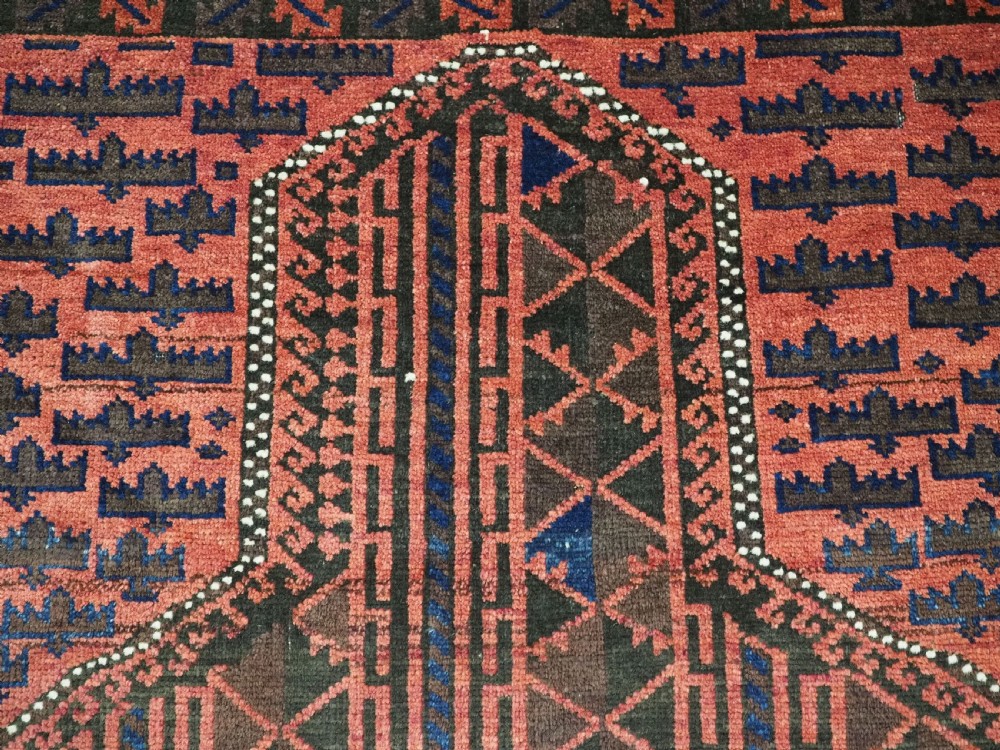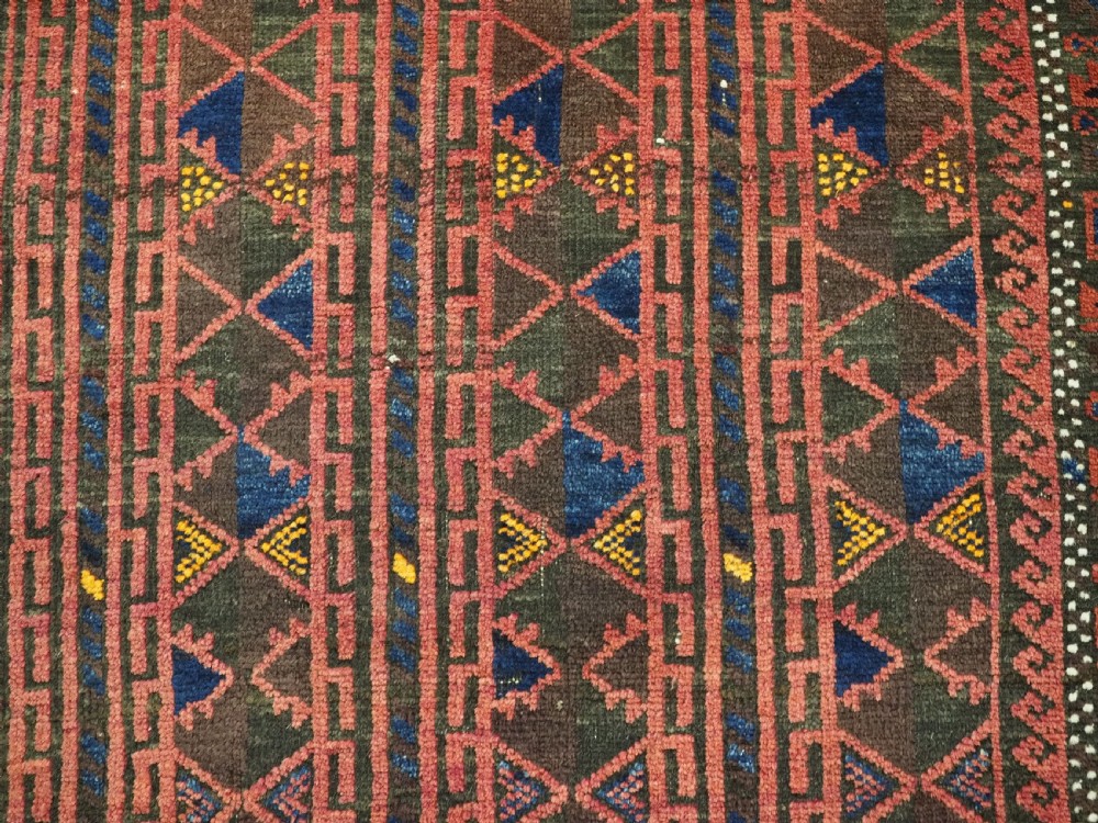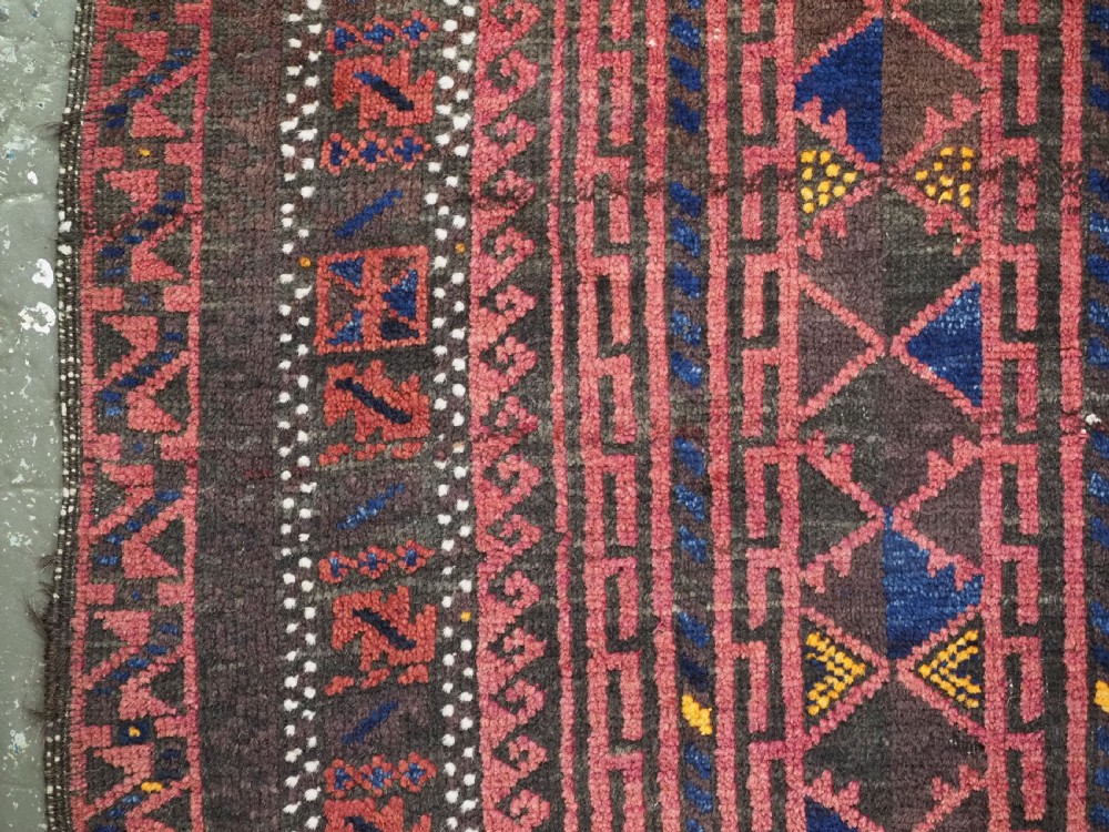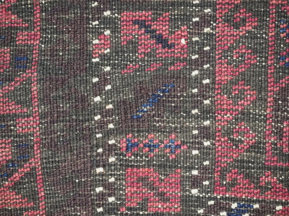 The rug is in good condition with even wear and medium pile, the rug has a soft floppy handle. There is some wear to the side bindings which is reflected in the price.