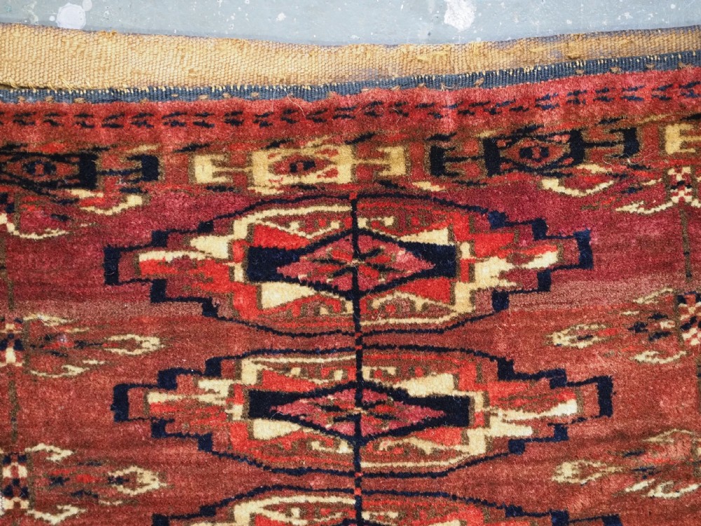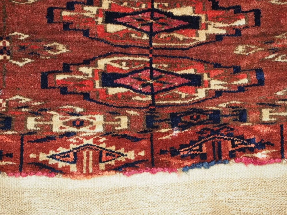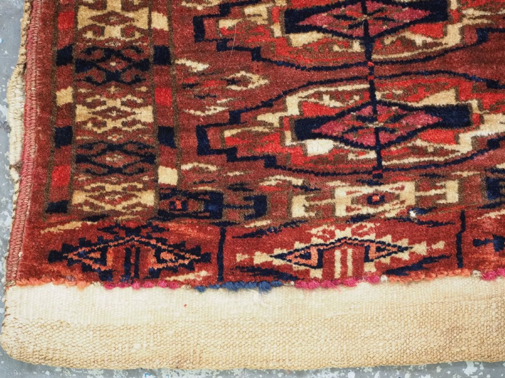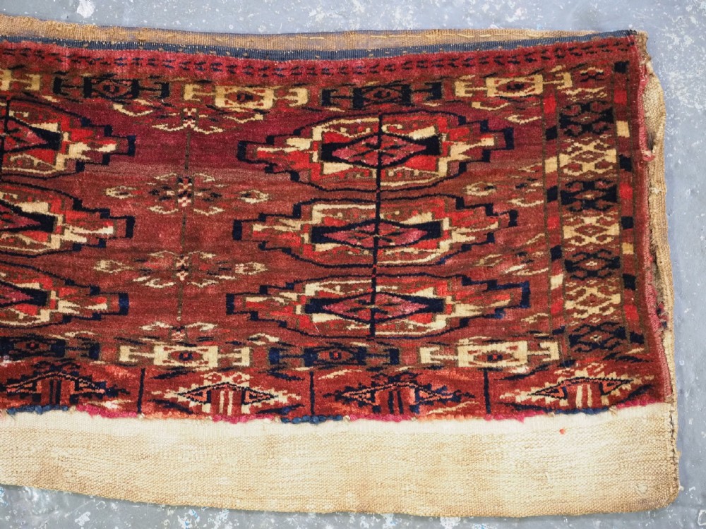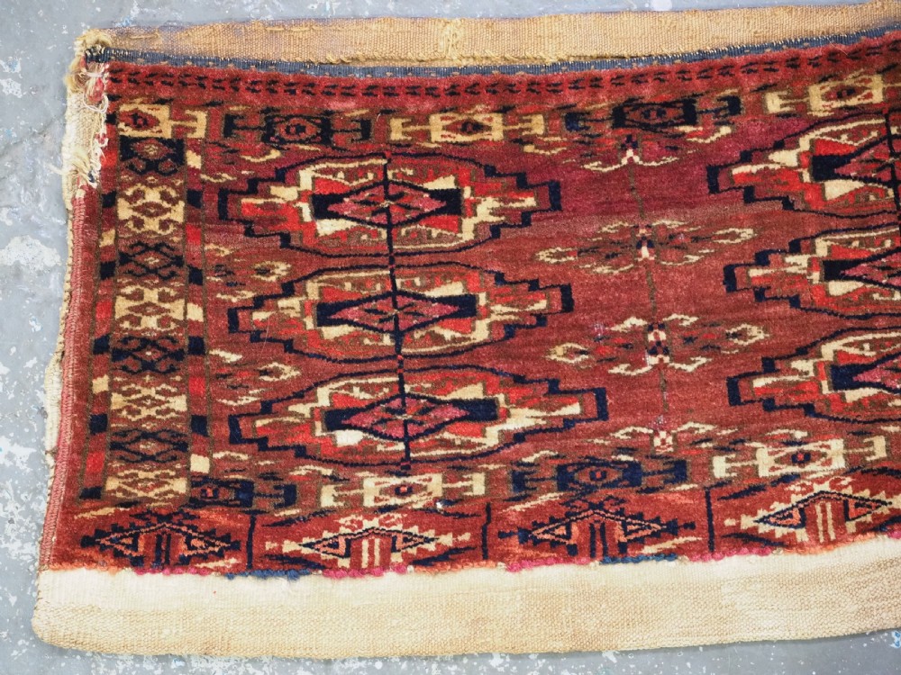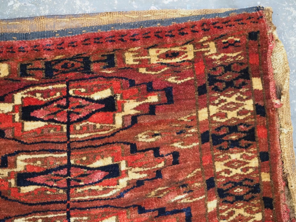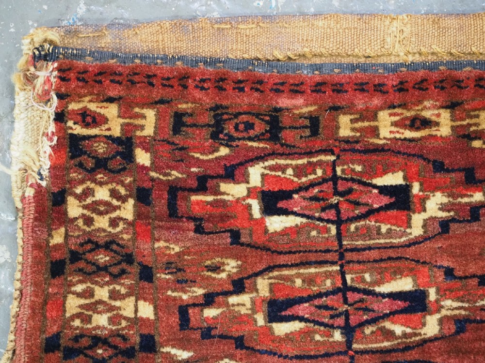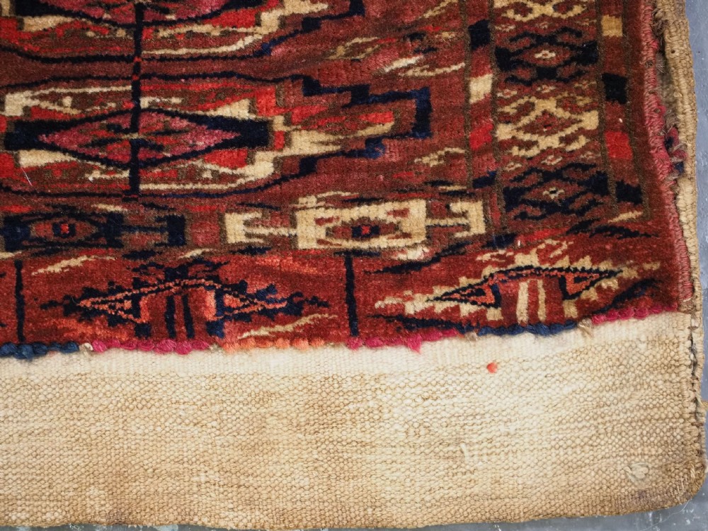 antique tekke turkmen 9 gul torba of small size complete with original back circa 1870