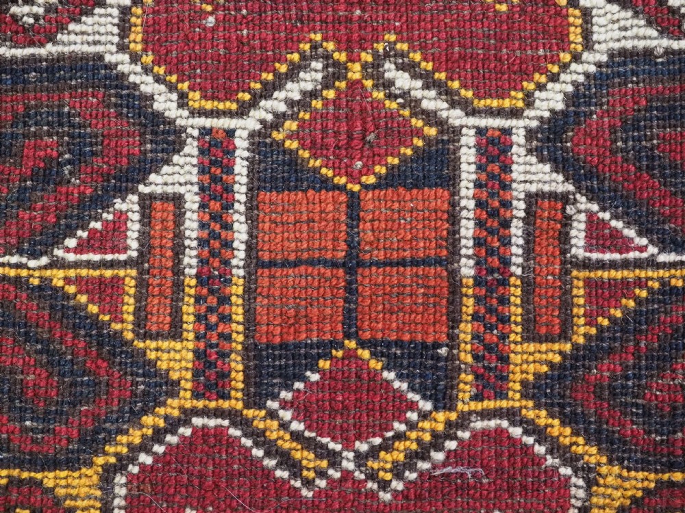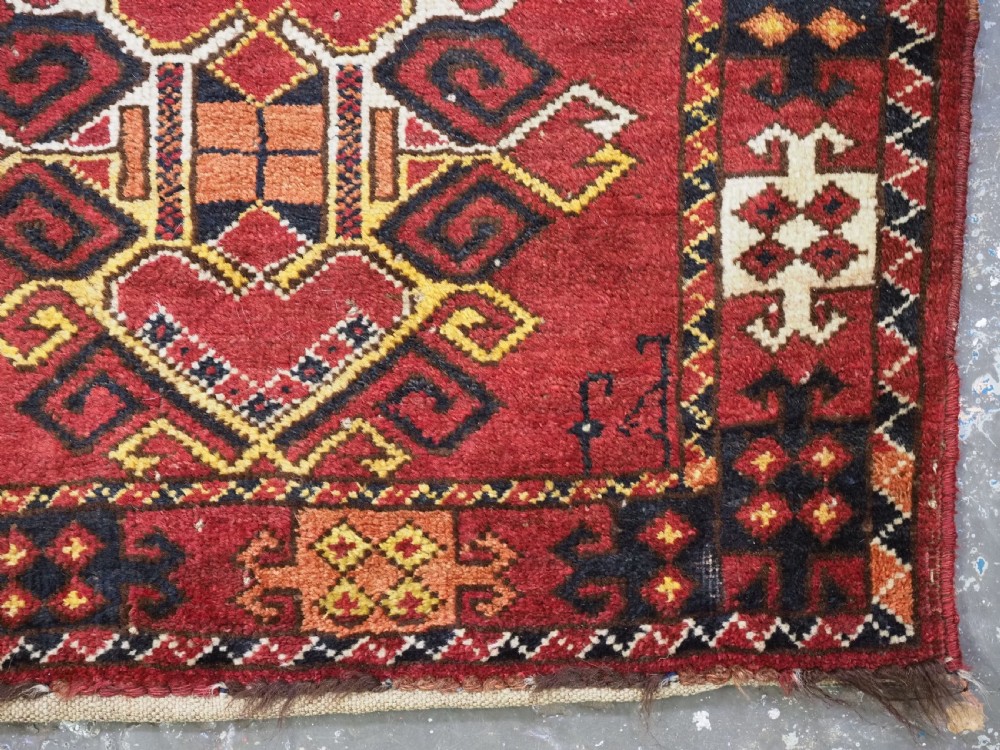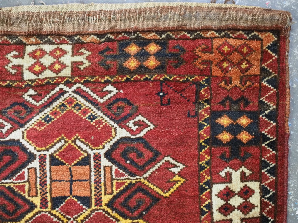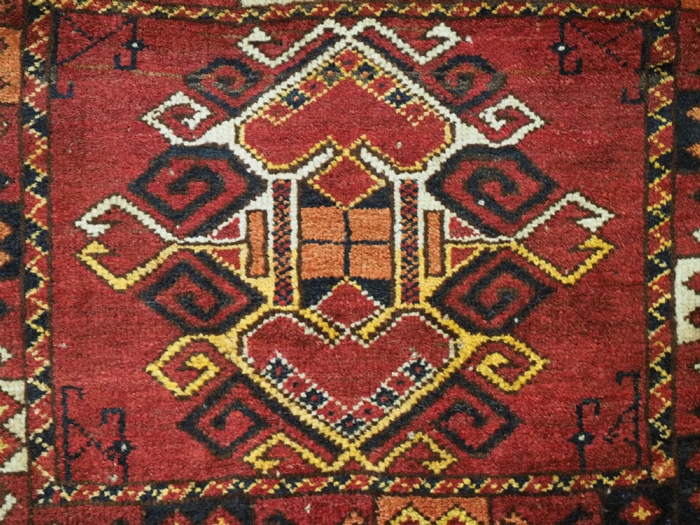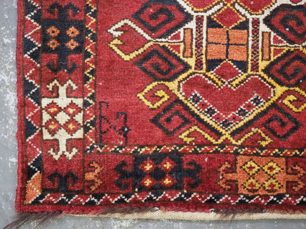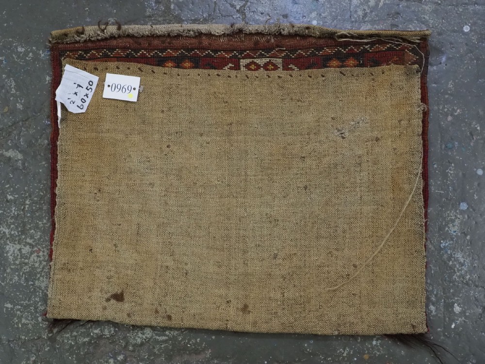 Size: 2ft 0in x 1ft 8in (62 x 50cm). Antique Ersari Beshir Turkmen 'kap' or small bag complete with original plain weave back. Circa 1920. This small Ersari Turkmen bag known as a 'kap' or small bag, was used for keeping personal belongings in, it was usually hung up inside the yurt. This example is of a classic Beshir design, with clear reds and typical Beshir yellow. The bag has been opened at the sides for display. The bag is in good condition with some signs of use. Stock Number: D-0969. All of our prices include FREE WORLD WIDE EXPRESS DELIVERY by DHL. To purchase any item please click on the payment link. We are also happy to accept most payment methods including American Express, bank transfers, debit & credit cards. To purchase by card over the telephone, please contact us on 01608 652111 or 0044 1608 652111 from outside the UK. Internal Ref: D-0969
