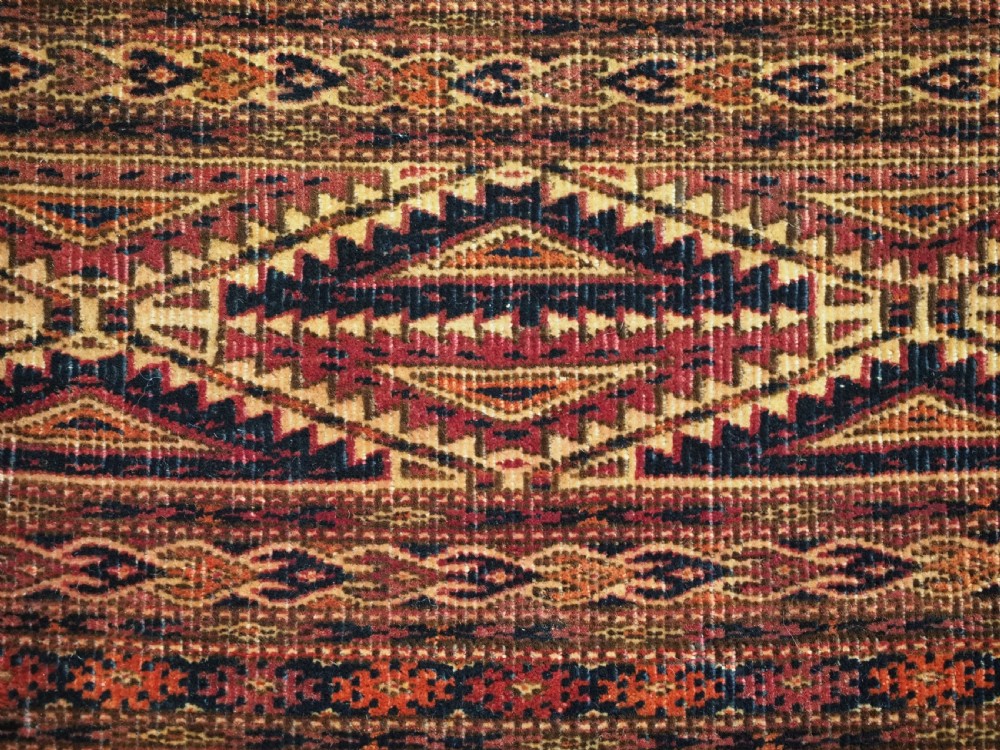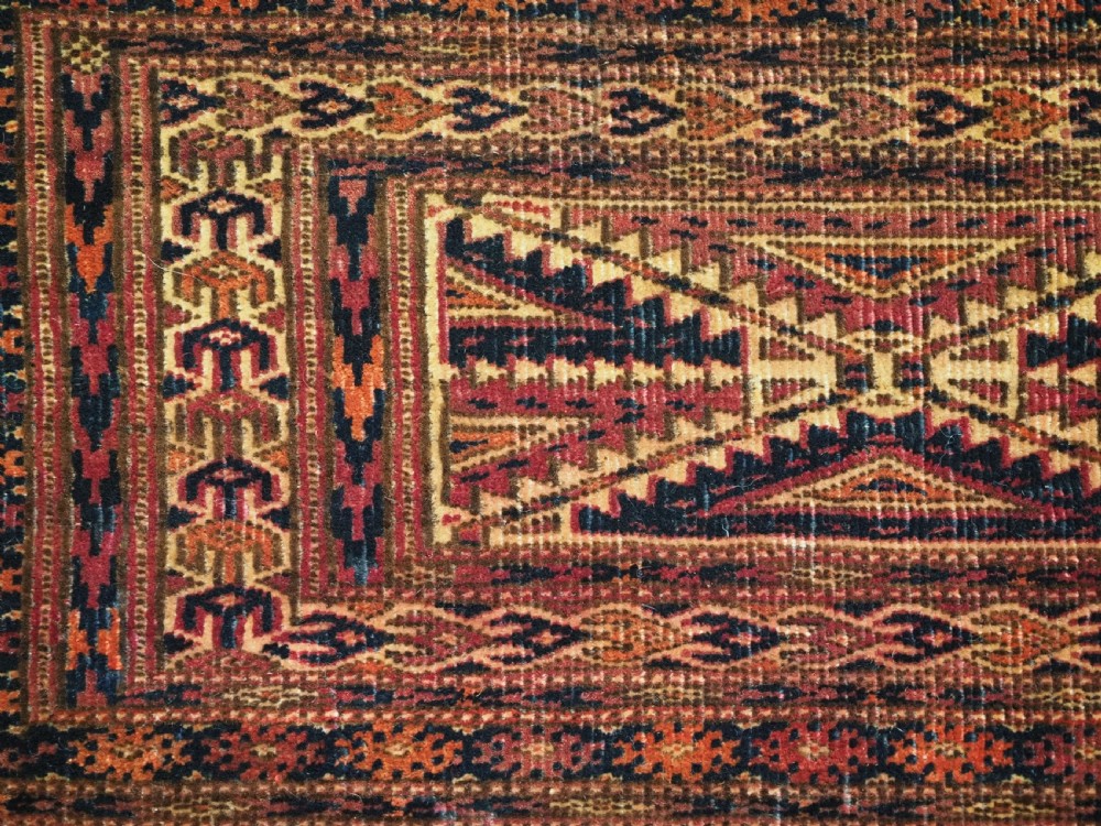 ANTIQUE TEKKE TURKMEN TORBA OF SMALL SIZE AND SCARCE DESIGN, CIRCA 1880.