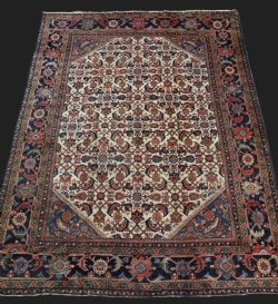 This is an outstanding copy of a 19th century Sultanabad carpet of large size. The large scale floral design is on an 'antique' ivory ground.
