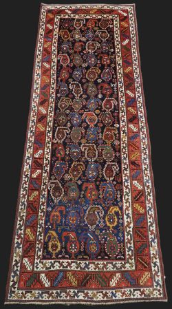 ANTIQUE NORTH PERSIAN KURDISH RUNNER WITH BOXED MEDALLION DESIGN, CIRCA 1900.