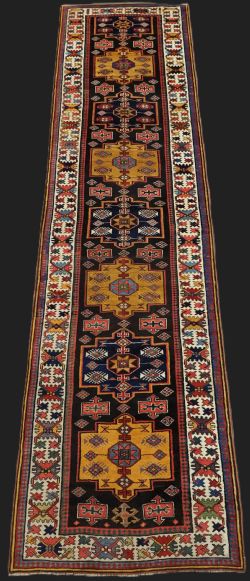 antique north persian kurdish runner with boxed medallion design circa 1900