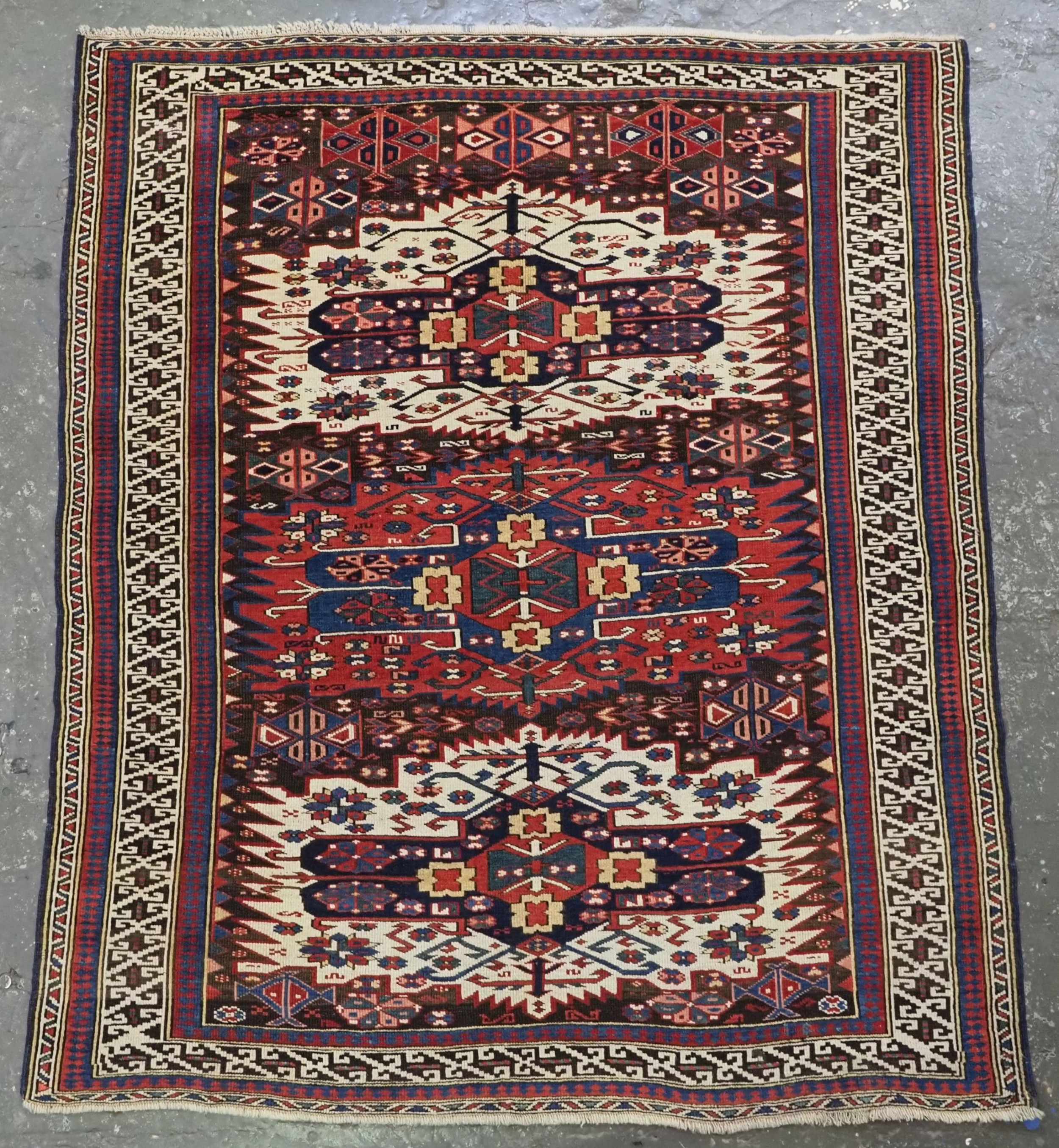 Antique Caucasian Zejwa village rug of classic design.