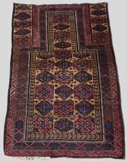 Old Afghan Baluch camel ground prayer rug with tree of life of a size suitable for a child.