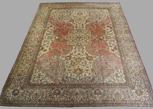 It is considered by many that these carpets, (such as the one offered for sale here), were woven in the prisons of Agra, India; close to the Taj Mahal, during the latter part of the 19th century; to satisfy demand created by the ruling British elite. It is well documented that carpets from the Agra jail were commissioned by Queen Victoria, to furnish rooms at Windsor Castle.