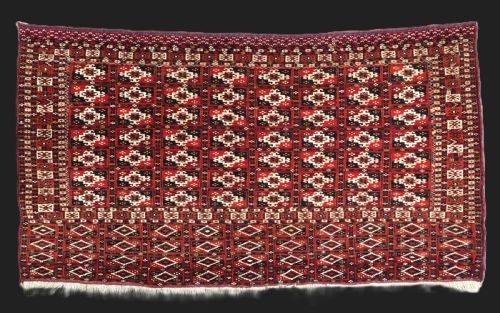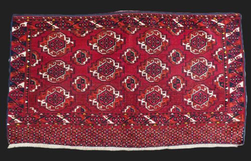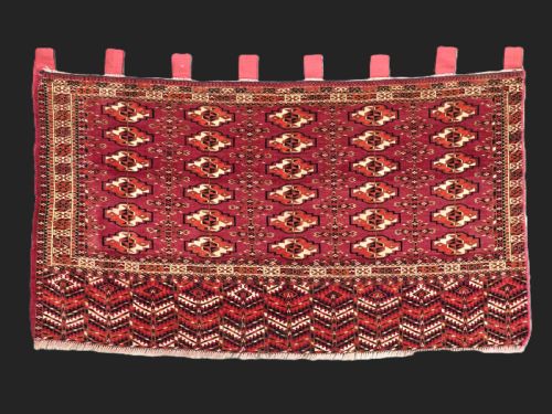 A superb collectible display item. Closely related items are published in 'Turkoman Tribal Rugs' by Werner Loges, plate 51, page 93. And another example is published in 'Turkoman Carpets' by Siawosch Azadi, item 41. Also see Jourden, Turkoman page 132.