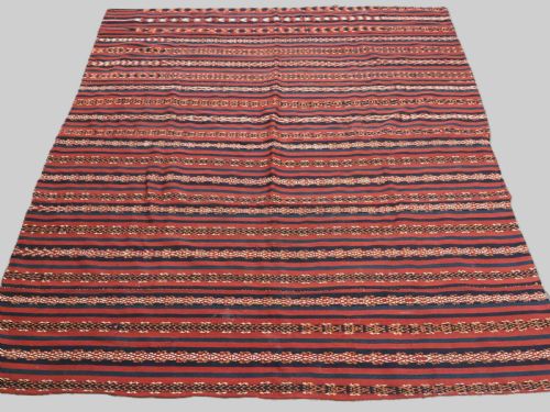 Woven in the city of Rasht in Northern Persia on the Black Sea coast, known as Rashti-Duzis they are famed for their intricately embroidered details and borders.